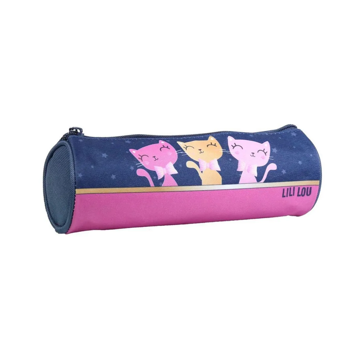 BAGTROTTER Trousse scolaire ronde Lili Lou 3 chats Bleue