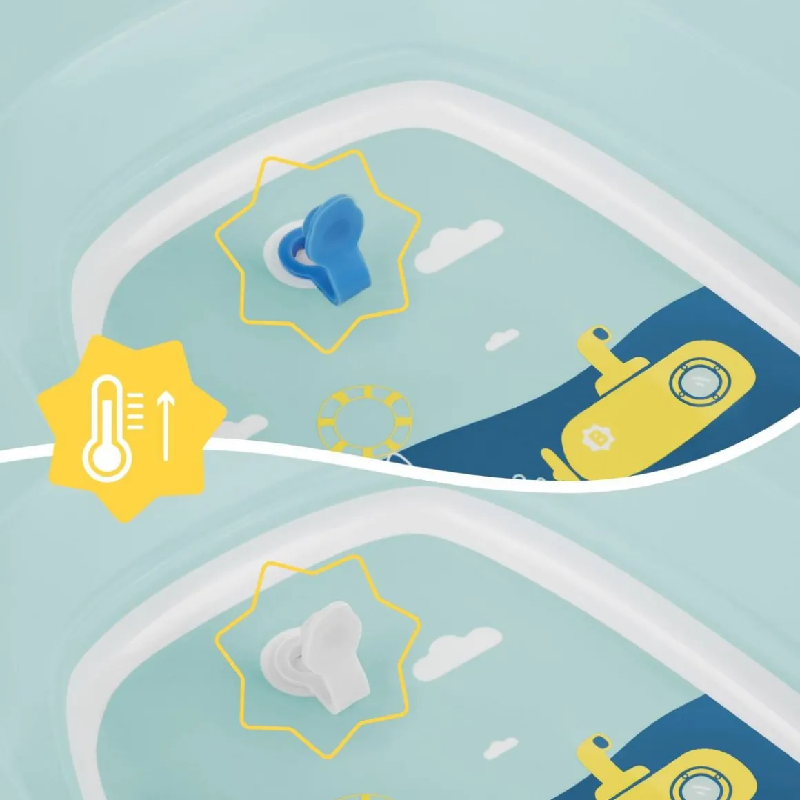 Le témoin de chaleur de la baignoire pliable change de couleur (de bleu à blanc) en fonction de la température de l’eau. Un vrai allié pour vous aider à préparer un bain à bonne température. Il fait également office de bouchon de vidange. De quoi gagner du temps une fois le moment du bain terminé !