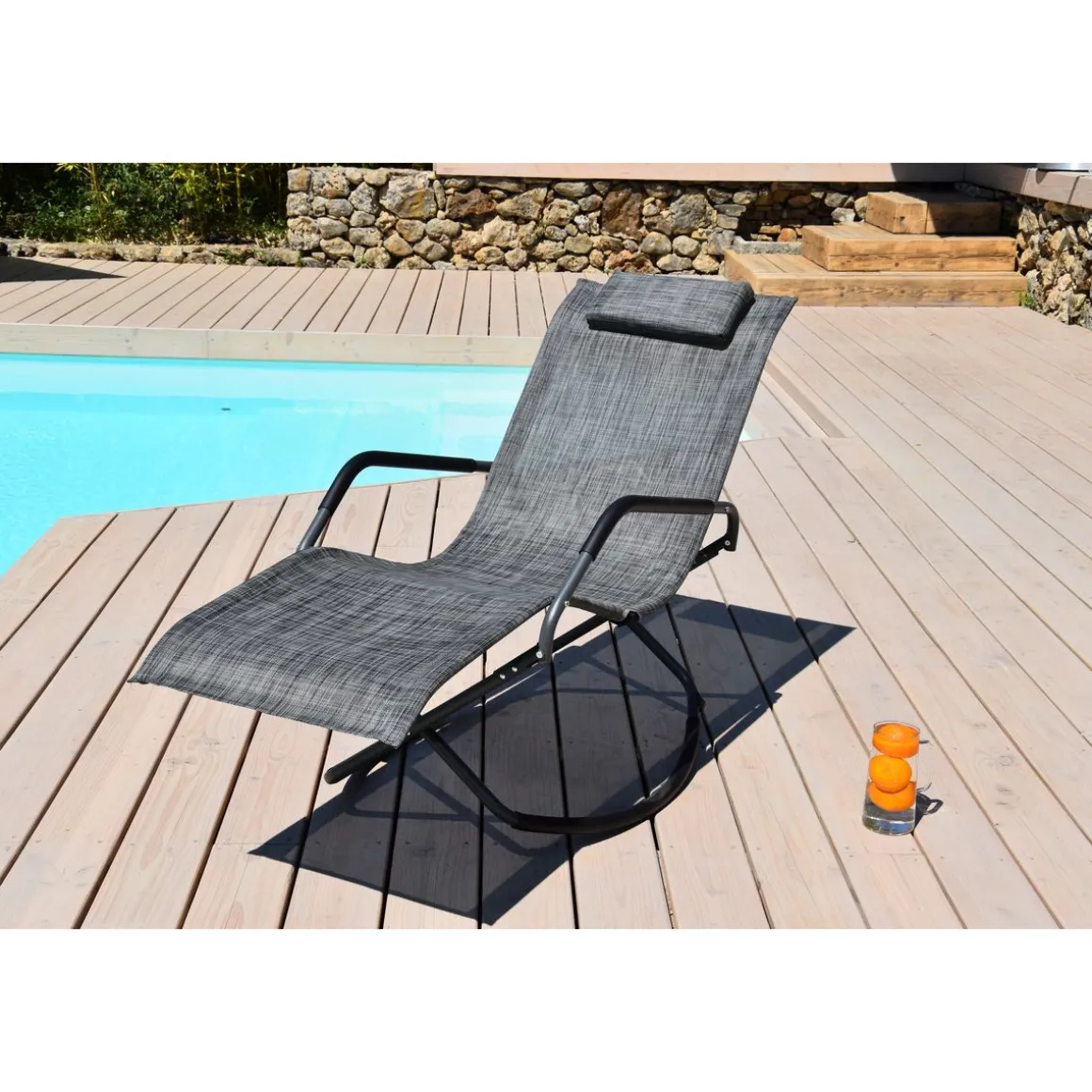 Bain de soleil pliant à bascule – Noir chiné – ELLYPSE