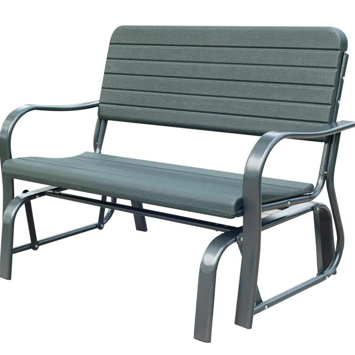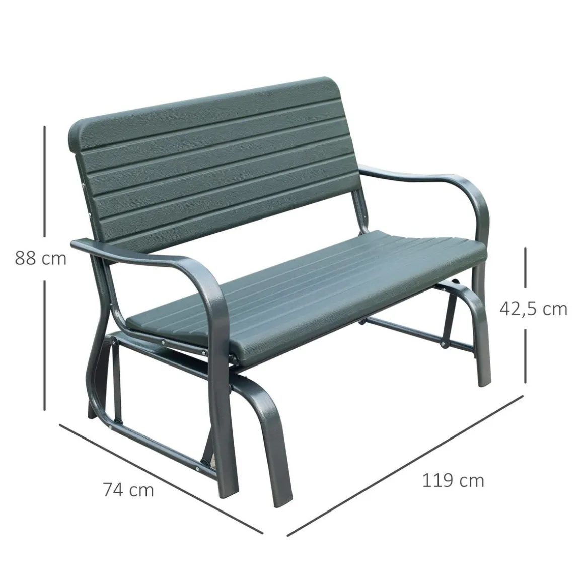 – Banc à bascule de jardin style contemporain mélant avec élégance métal époxy gris moucheté et HDPE effet grain de bois vert fougère