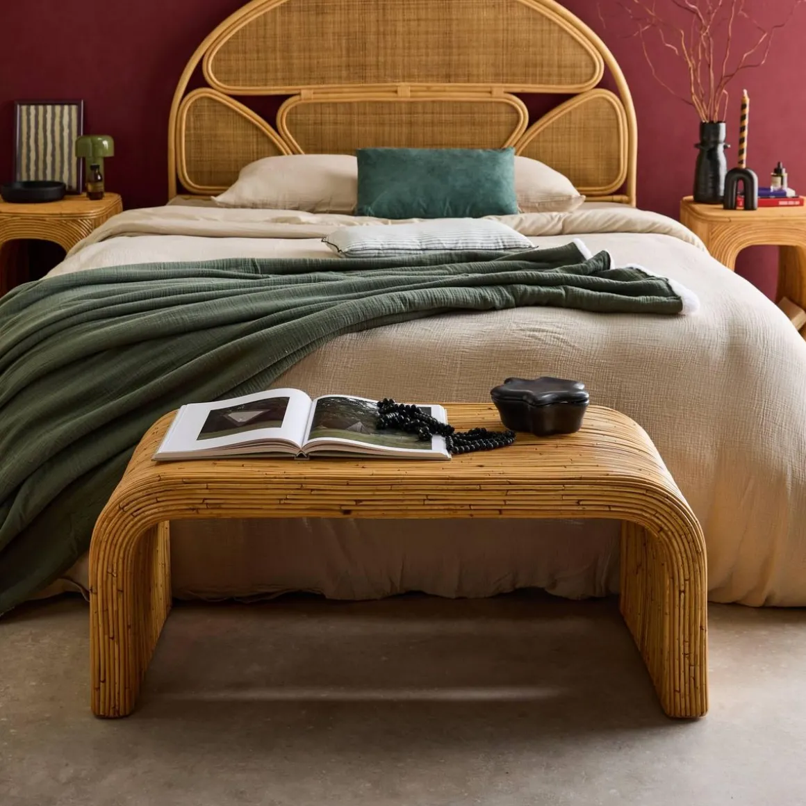 Le tissage du rotin apporte une texture riche et une profondeur visuelle, ajoutant un intérêt visuel à l’espace. Les bords arrondis adoucissent les lignes et peuvent donner une impression de fluidité dans la pièce.