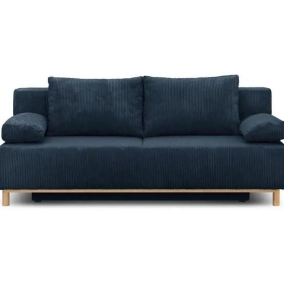 Banquette convertible 3 places MIKA – Velours côtelé bleu foncé – Coffre de rangement – L 192 x H 84 x P 93 cm