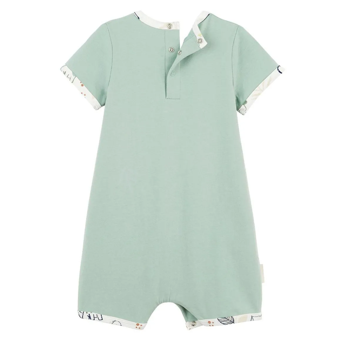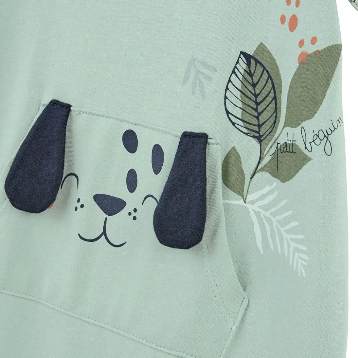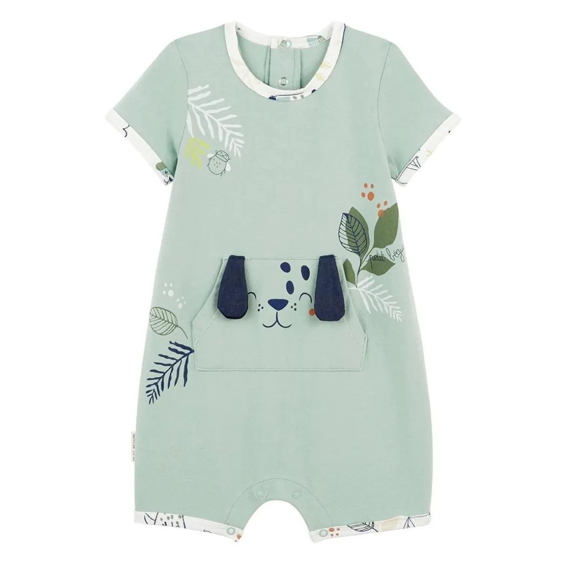 Avez-vous déjà vu une barboteuse aussi mignonne ? Avec sa petite poche kangourou et ses petites oreilles de chien, cette barboteuse vert d’eau accompagnera bébé au quotidien. À manches courtes, votre petit bout sera super confort pour bouger toute la journée. Une poche kangourou trop stylée, avec deux petites oreilles ! Produit labellisé STANDARD 100 by OEKO-TEX ®(BJ020 189402 TESTEX) Une ouverture pressionnée à l’entrejambe et au dos