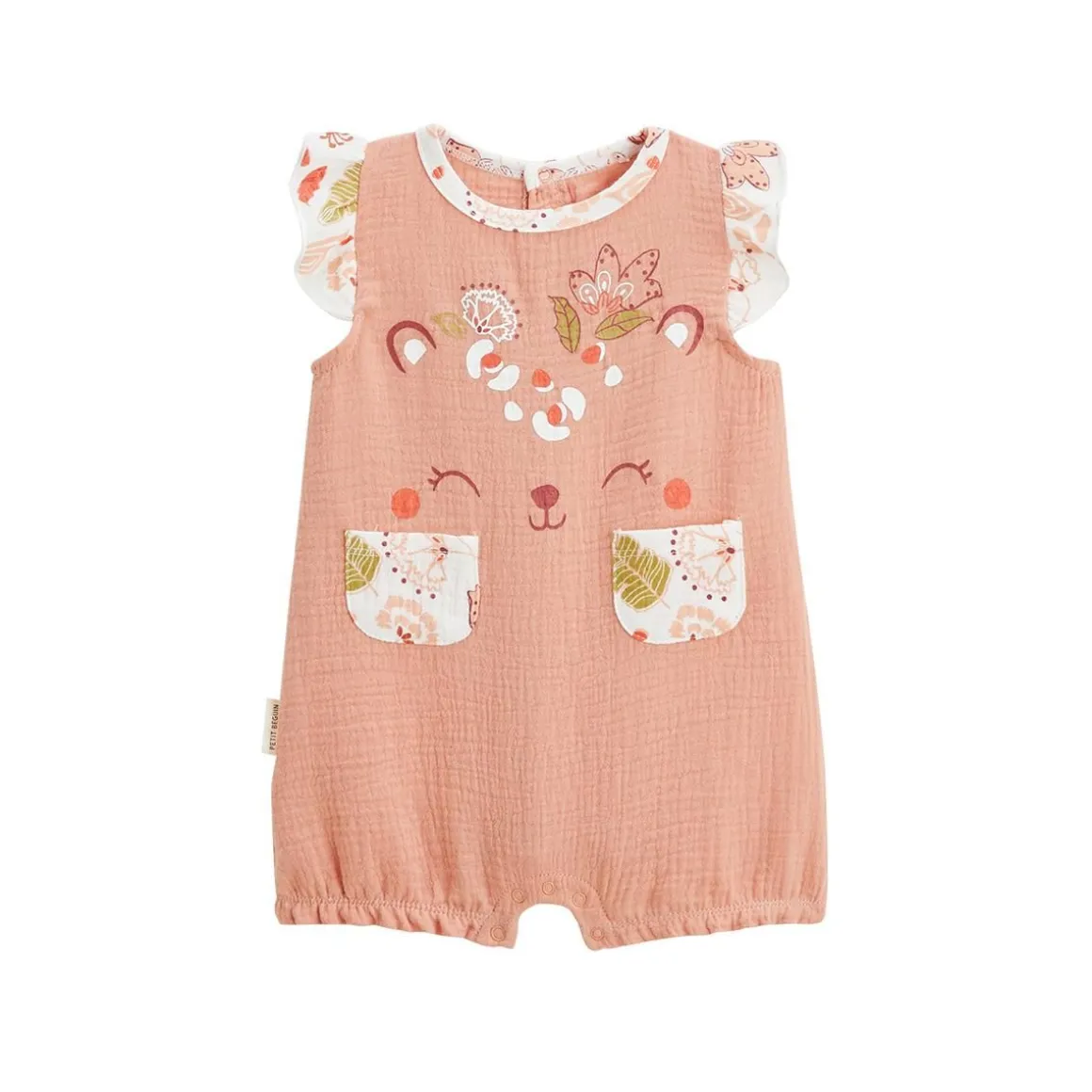 Un look tout mignon pour bébé avec cette barboteuse Mindanao en coton gaufré ! Avec ses jolis volants aux épaules et ses petites poches pratiques, elle offre à bébé à la fois style et confort. Produit labellisé STANDARD 100 by OEKO-TEX ® (BJ020 189402 TESTEX) En gaze de coton, matière légère et confortable Une ouverture pressionnée au dos et à l’entrejambe pour faciliter l’habillage