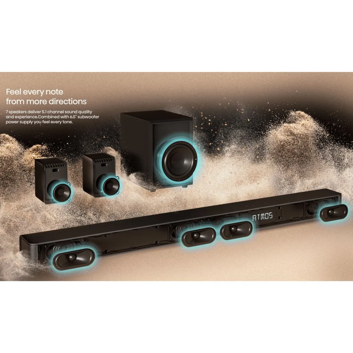 Dotée d’une puissance totale de 240 watts, cette barre de son offre un son clair et dynamique qui remplit facilement la pièce. Le caisson de basses sans fil ajoute des basses profondes et percutantes pour une expérience audio complète.
