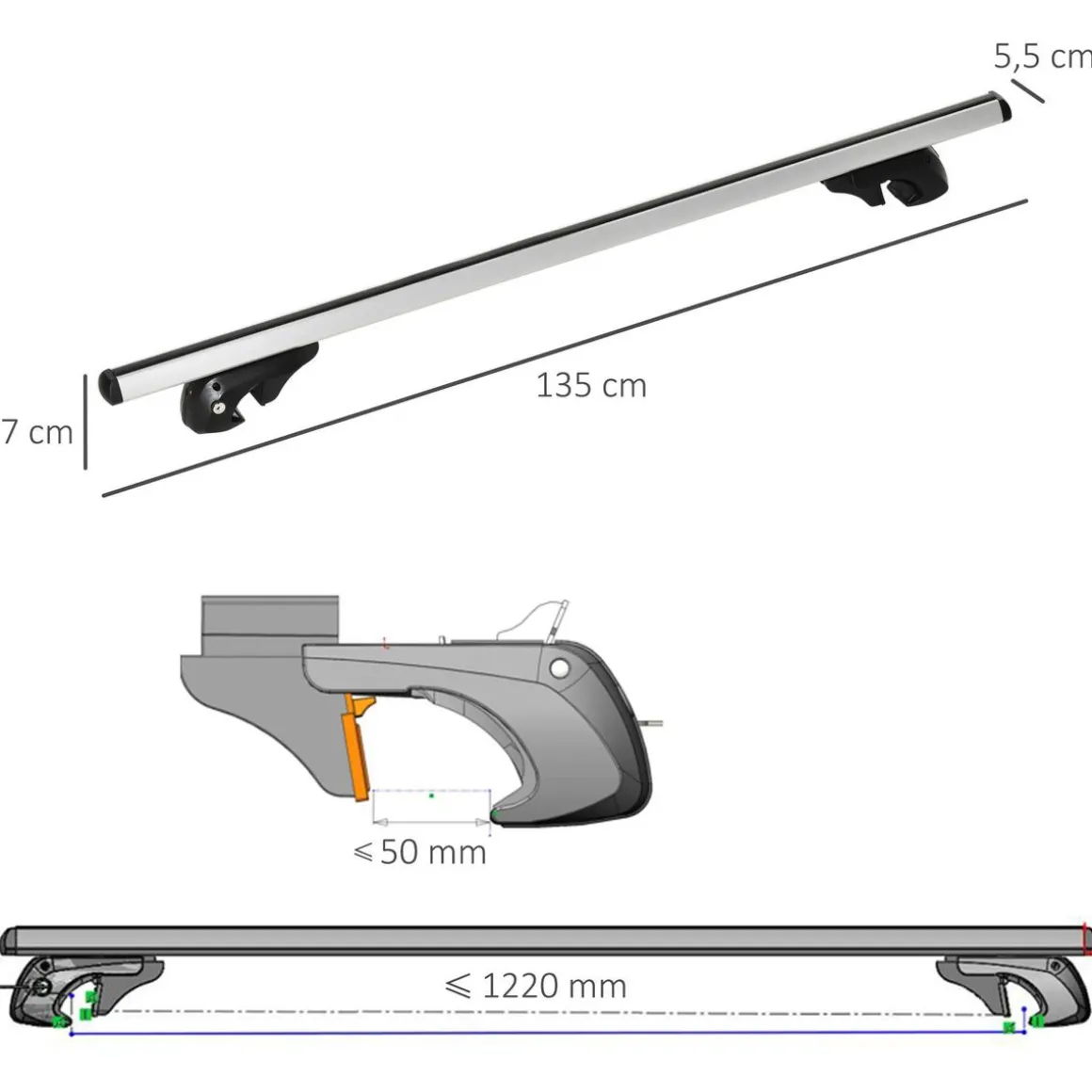 – Barres de toit compatibles à la plupart des véhicules équipée de rails de toit sans espace entre le rail et le toit
