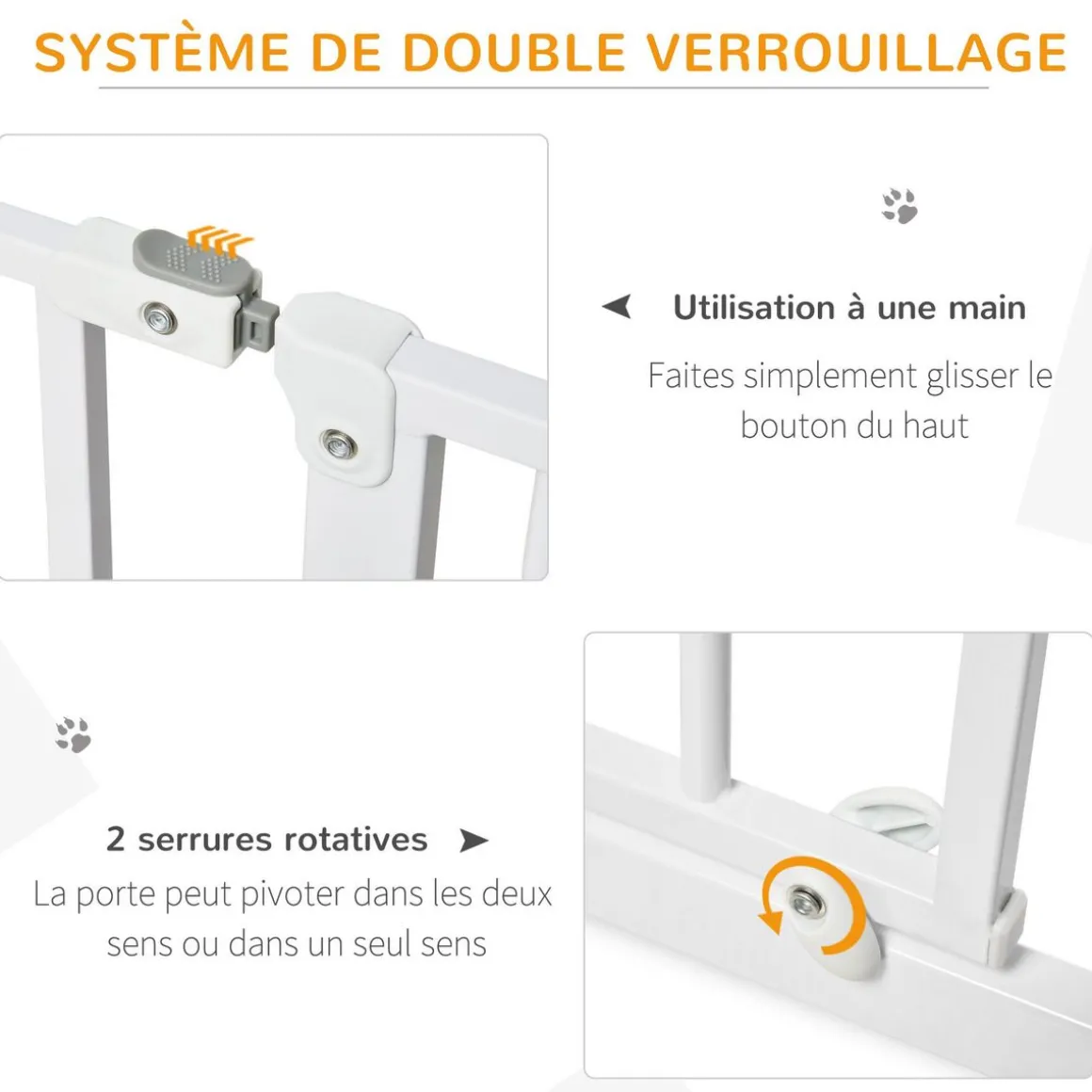 – Le double système de verrouillage assure la sécurité de votre animal de compagnie dans un endroit,