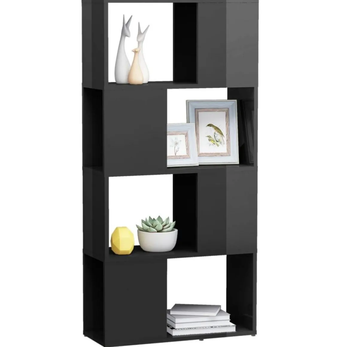 La construction de la bibliotheque assure sa robustesse, sa durabilite et son service durable. Dotee de 4 compartiments spacieux, la cloison de separation offre un espace de rangement suffisant pour garder vos magazines, livres, DVD, appareils multimedia et autres objets decoratifs bien organises et a portee de main. Placez l’etagere dans un endroit bien eclaire et plongez dans votre livre prefere !
