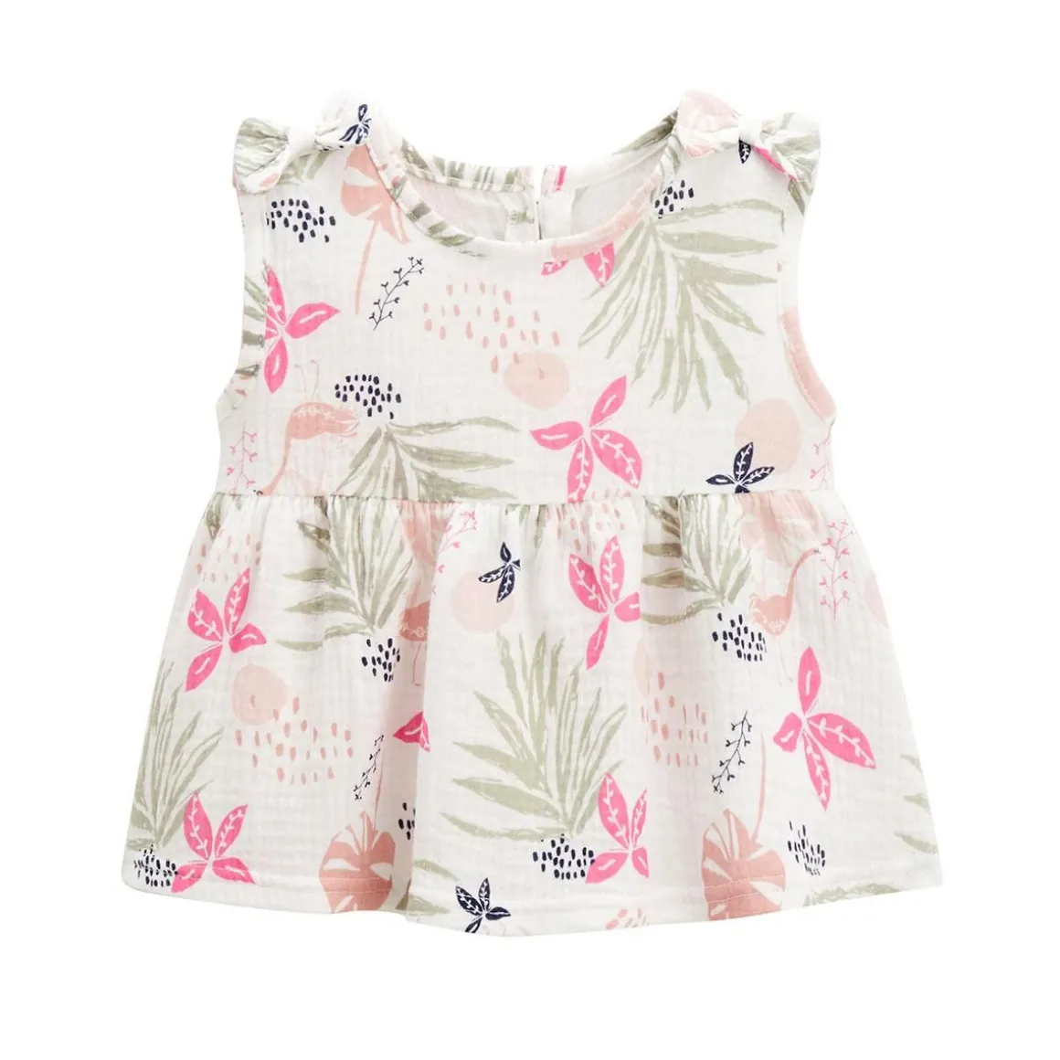 Une belle petite blouse légère et romantique pour les beaux jours ! Facile à associer avec un petit jean, une jupe, un short, cette blouse va sublimer les tenues de votre fille. On adore on côté agréable grâce à sa matière en coton gaufré et ses petits noeuds aux épaules. En matière gaze de coton toute douce Des motifs et des volants à croquer Habillage facilité par de jolis boutons dans le haut du dos