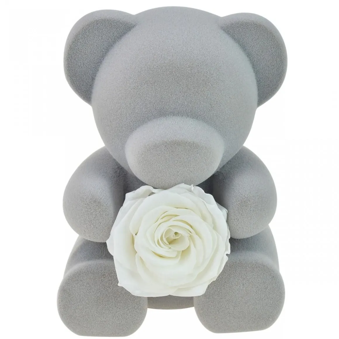 Ce coffret à bijoux avec un ourson et une rose éternelle naturelle est une œuvre artistique qui rend les cadeaux absolument uniques et magnifiques.