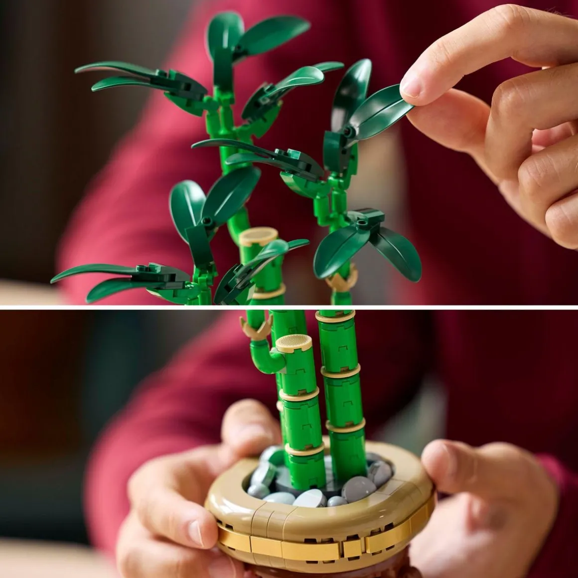 Recréant la sérénité de la nature, cette plante décorative aux détails réalistes présente 3 tiges de bambou et des galets, et repose dans un pot sur un socle effet bois. Ce bambou est un magnifique objet de décoration à placer dans un intérieur ou un bureau. Pour une décoration florale encore plus foisonnante, placez-le aux côtés de vraies plantes ou d’autres modèles de la gamme LEGO Botanique (vendus séparément).