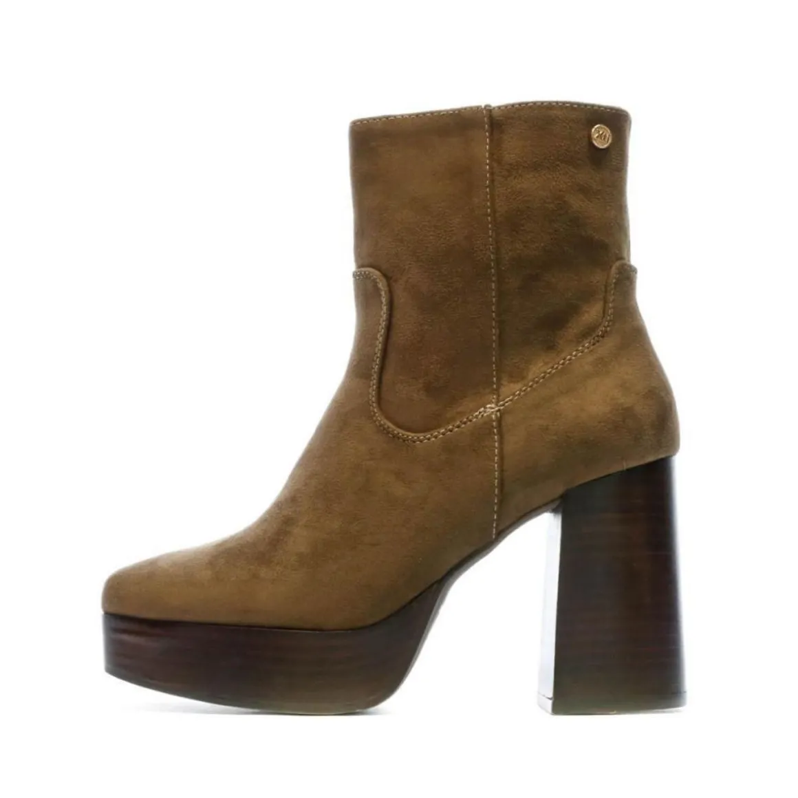 Optez pour ces bottines de la marque XTI ! Coloris : Marron foncé Bottines montantes Plateforme : 3,5cm Talons : 10cm Semelles bois Cuir nubuck