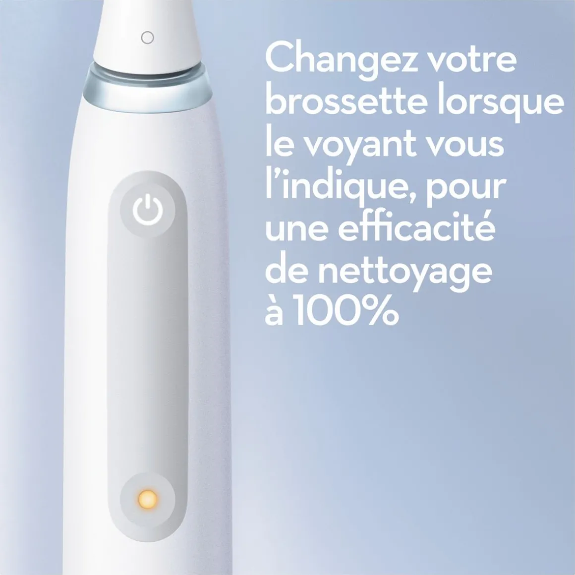 Rappel de remplacement de brossette : Oui, changez votre brossette lorsque le voyant vous l’indique pour garder une efficacité de brossage à 100%.