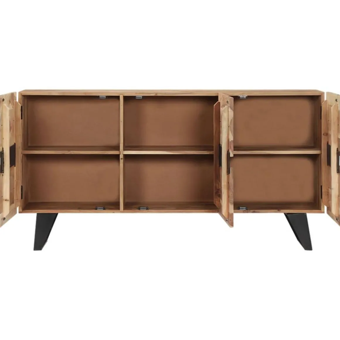 L’armoire est en bois massif d’acacia qui a une finition naturelle pour lui donner un bel aspect. C’est pourquoi ce meuble est extremement stable, durable et attire l’attention. De plus, cette armoire en bois est entierement fabriquee a la main et les grains de bois esthetiques rendent chaque meuble unique et legerement different l’un de l’autre. Ce dressoir dispose de 6 armoires a 3 portes, offrant suffisamment d’espace pour ranger vos chaussures, livres, ainsi que d’autres articles divers.