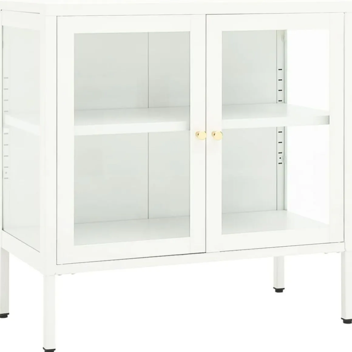 Fabriquee en acier, la construction de cette armoire de rangement est robuste et durable, garantissant des annees de service. L’armoire comprend des compartiments dans la porte vitree, offrant un grand espace de rangement pour ranger et exposer bien organises et a portee de main vos livres, magazines, DVD, vases et autres objets de decoration. De plus, l’etagere peut etre installee a differents niveaux pour modifier la taille de l’espace de stockage. Les pieds peuvent etre ajustes facilement a la hauteur requise et aident l’armoire laterale a rester stable. De plus, elle est egalement facile a nettoyer avec un chiffon humide.