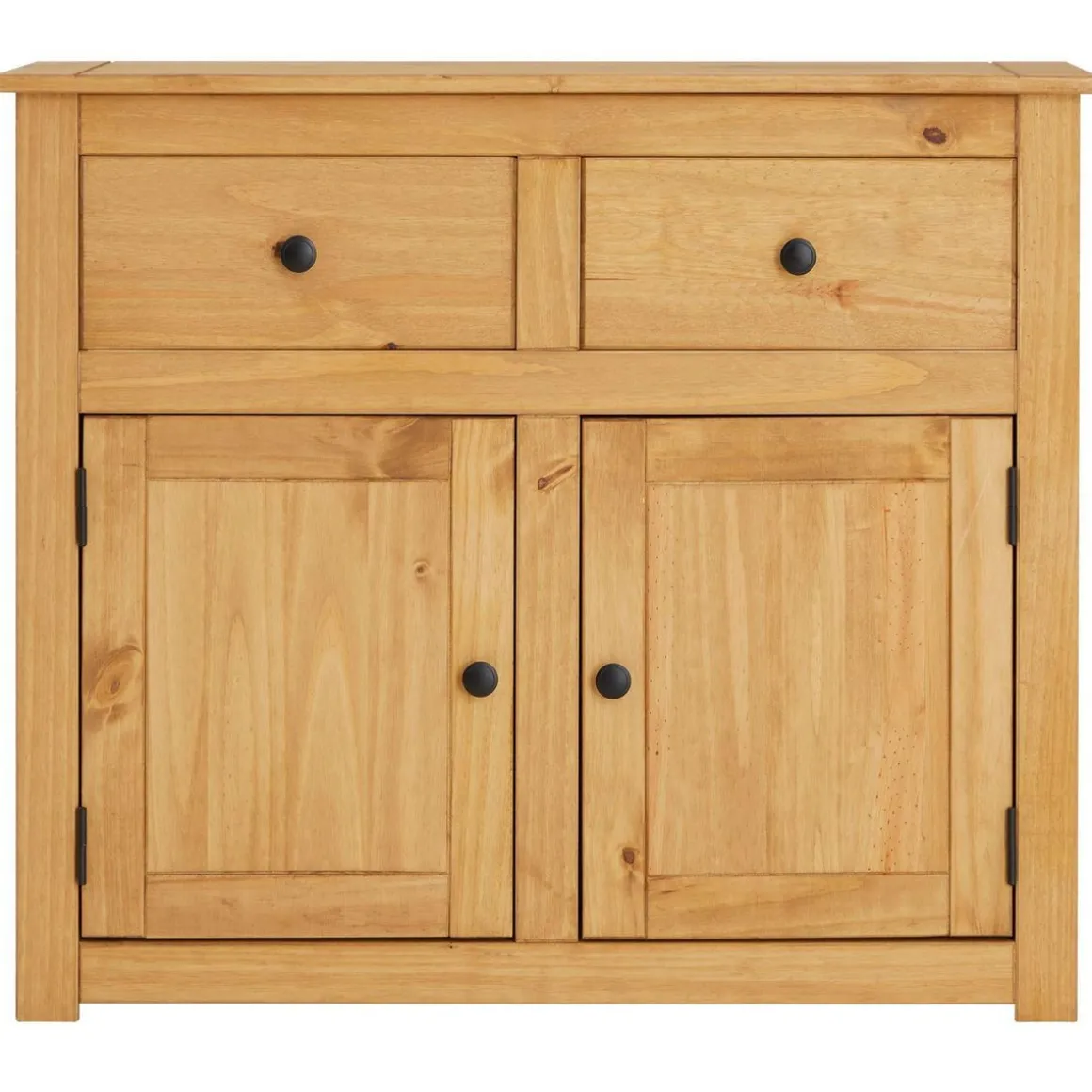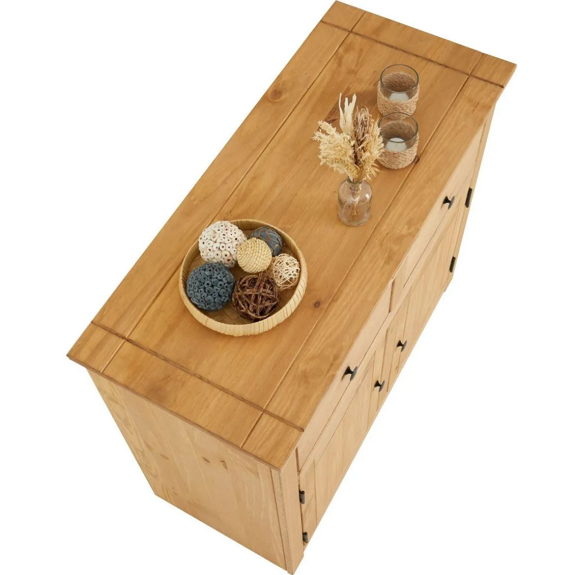 – Le buffet est fabriqué En Pin massif à la finition teintée et cirée.