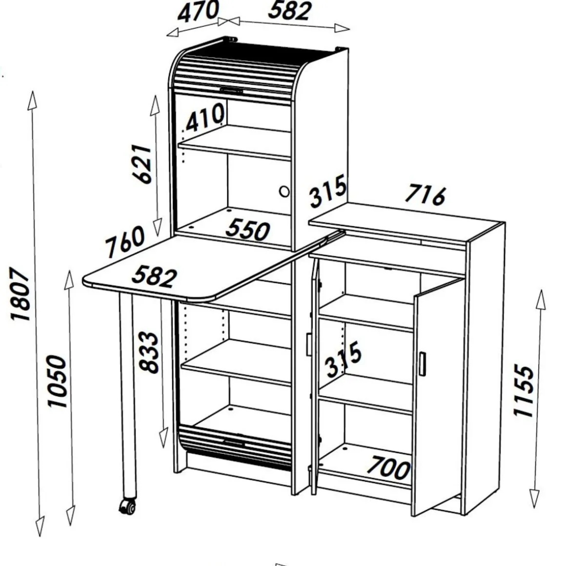 Partie haute garnie d’une tablettes réglable.