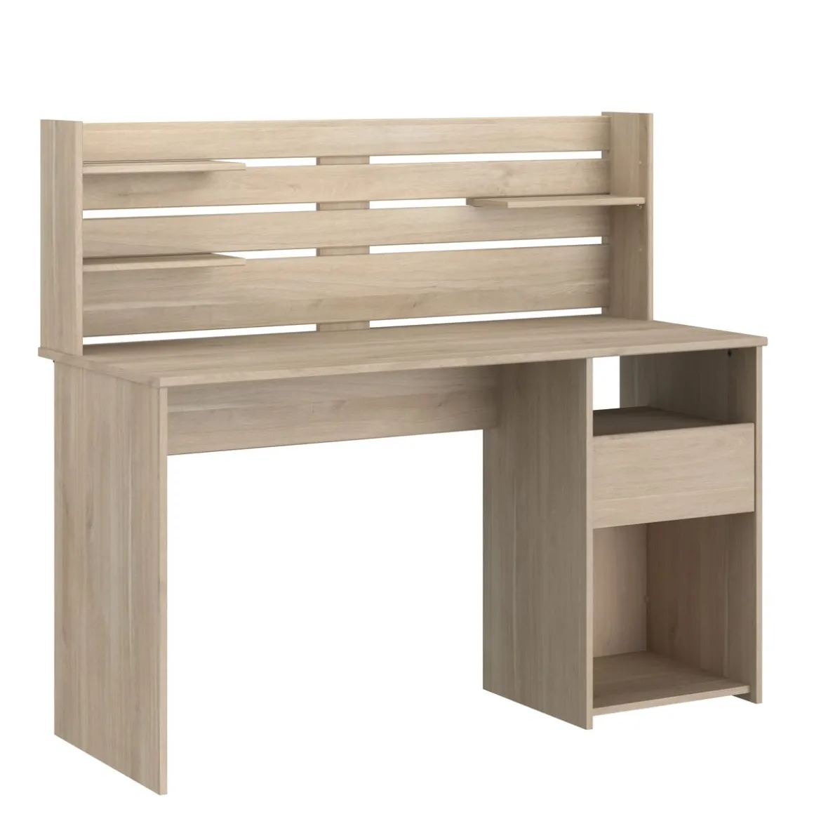 Le bureau droit PIA en imitation chêne est conçu pour offrir un espace de travail spacieux, idéal pour accueillir de grands écrans d’ordinateurs. Grâce à ses nombreux rangements, il est parfait pour organiser vos fournitures avec ses 3 tablettes amovibles, 1 tiroir et 2 niches. Les tablettes sont ajustables en 6 positions pour personnaliser l’aménagement selon vos besoins.