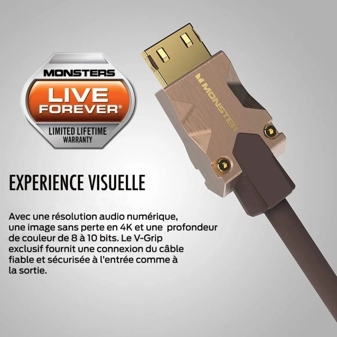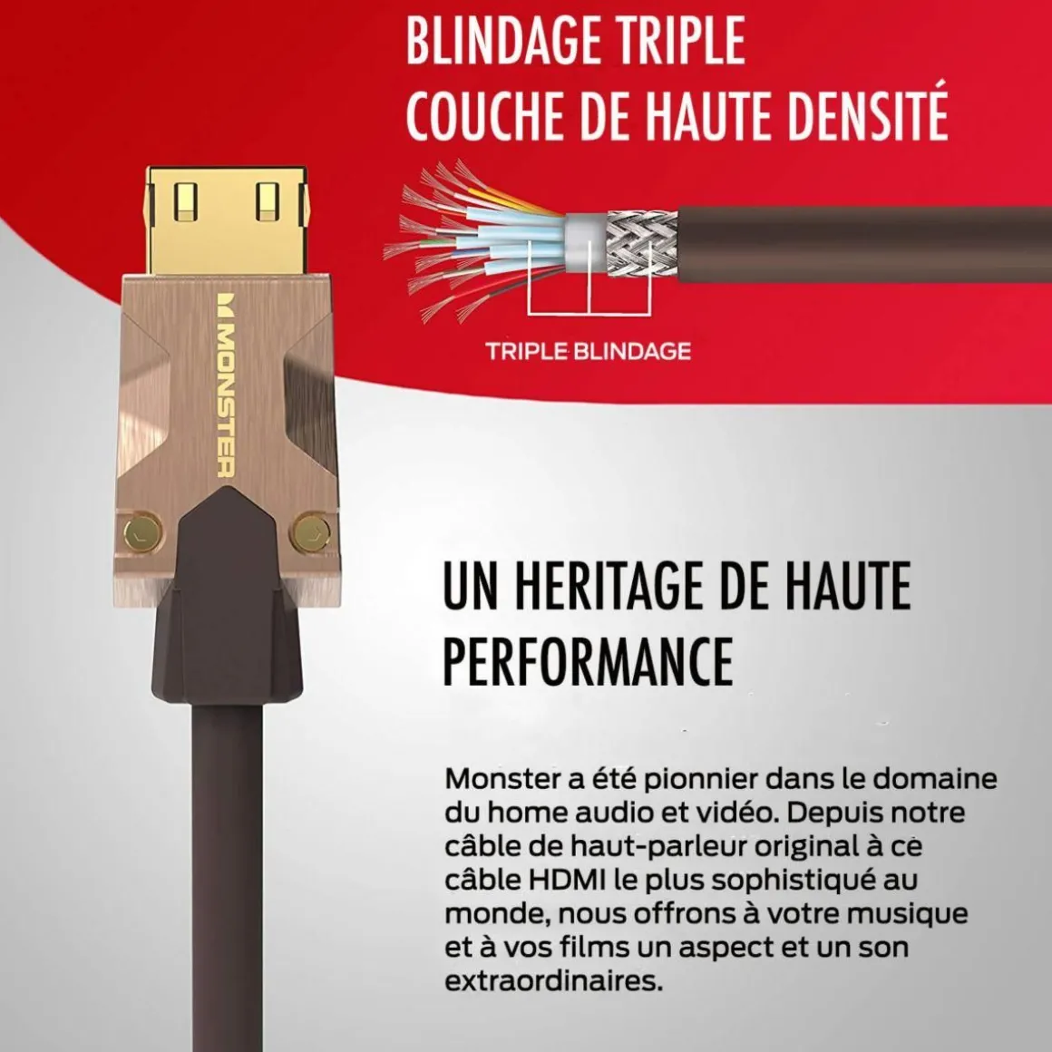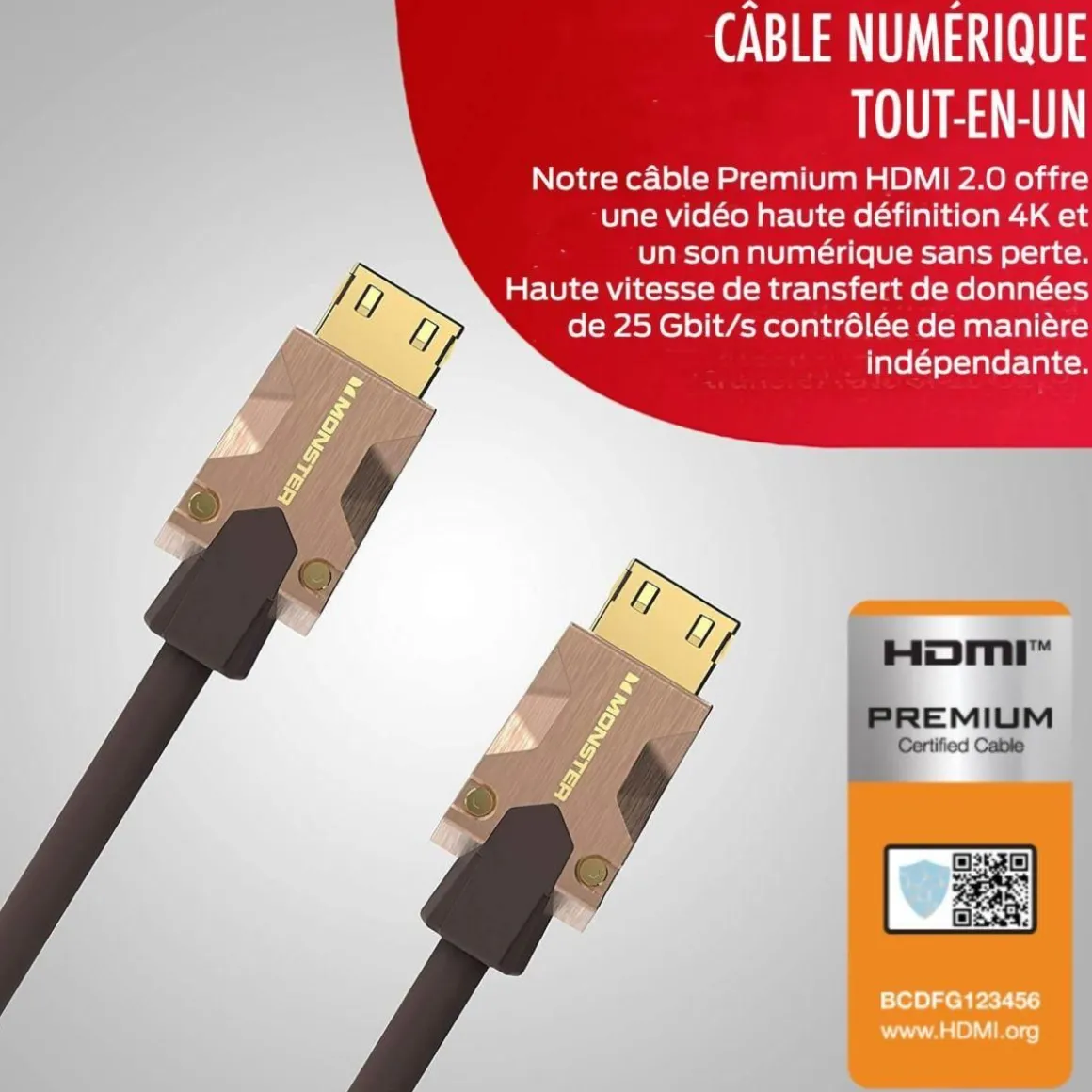 | Avantages | Le câble Monster HDMI 2.0 offre des résolutions ultra haute définition 4K à des taux de rafraîchissement impressionnants de 60 Hz et un rapport de couleurs de 10 bits pour une image en HDR10+ et une qualité audio immersives par le canal ARC | |