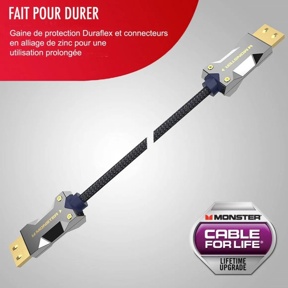 | Particularité(s) | Monster protège votre câble à vie. Cable For Life™ est exclusif à Monster. Si à l’avenir, vous achetez un téléviseur et une source qui dépassent les capacités de ce câble et qu’il cesse de fonctionner, Monster le remplacera gratuitement ! | |