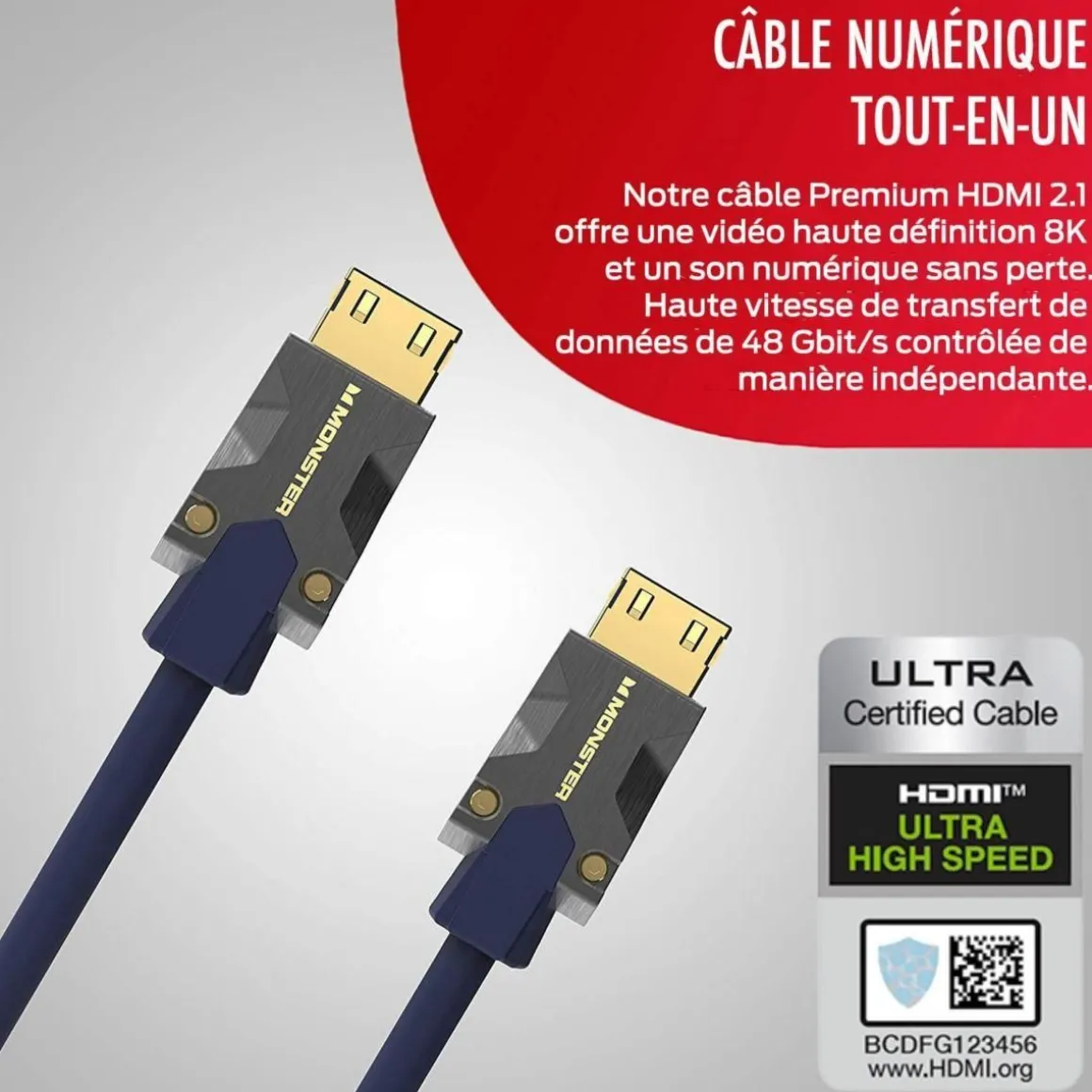| Avantages | – Câble Monster 8K HDMI 2.1 fournit des détails nets et précis pour une expérience visuelle immersive – Taux de transfert à haute vitesse allant jusqu’à 48 Gbit/s permet d’atteindre des profondeurs de couleur 12 bits | |