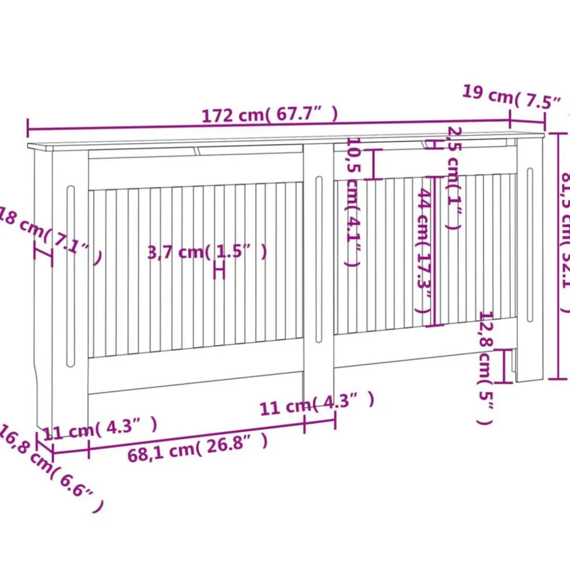 L’armoire de radiateur robuste et durable est faite de MDF de haute qualite. L’armoire de cache-radiateur a un design a lattes moderne qui convient a tous les decors et il est tres facile a assembler.