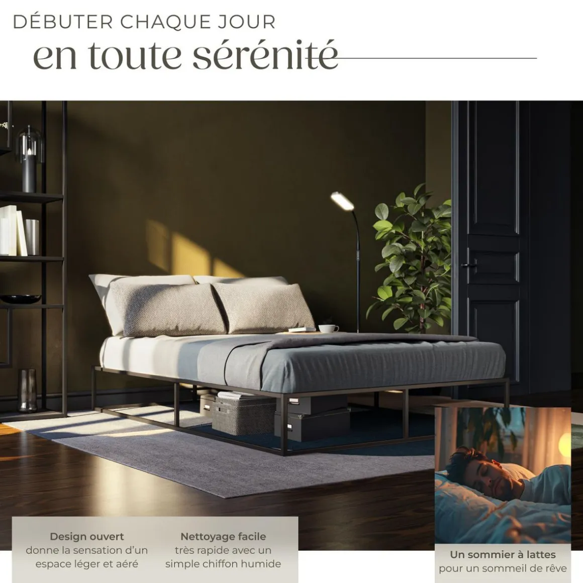 Cadre de lit en métal KYOTO – design minimaliste allié à une fonctionnalité maximale