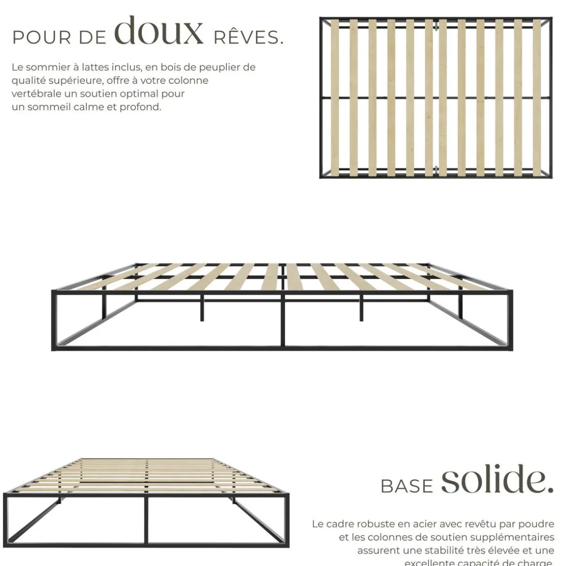 - Lit en métal avec une capacité de charge élevée dans un style minimaliste