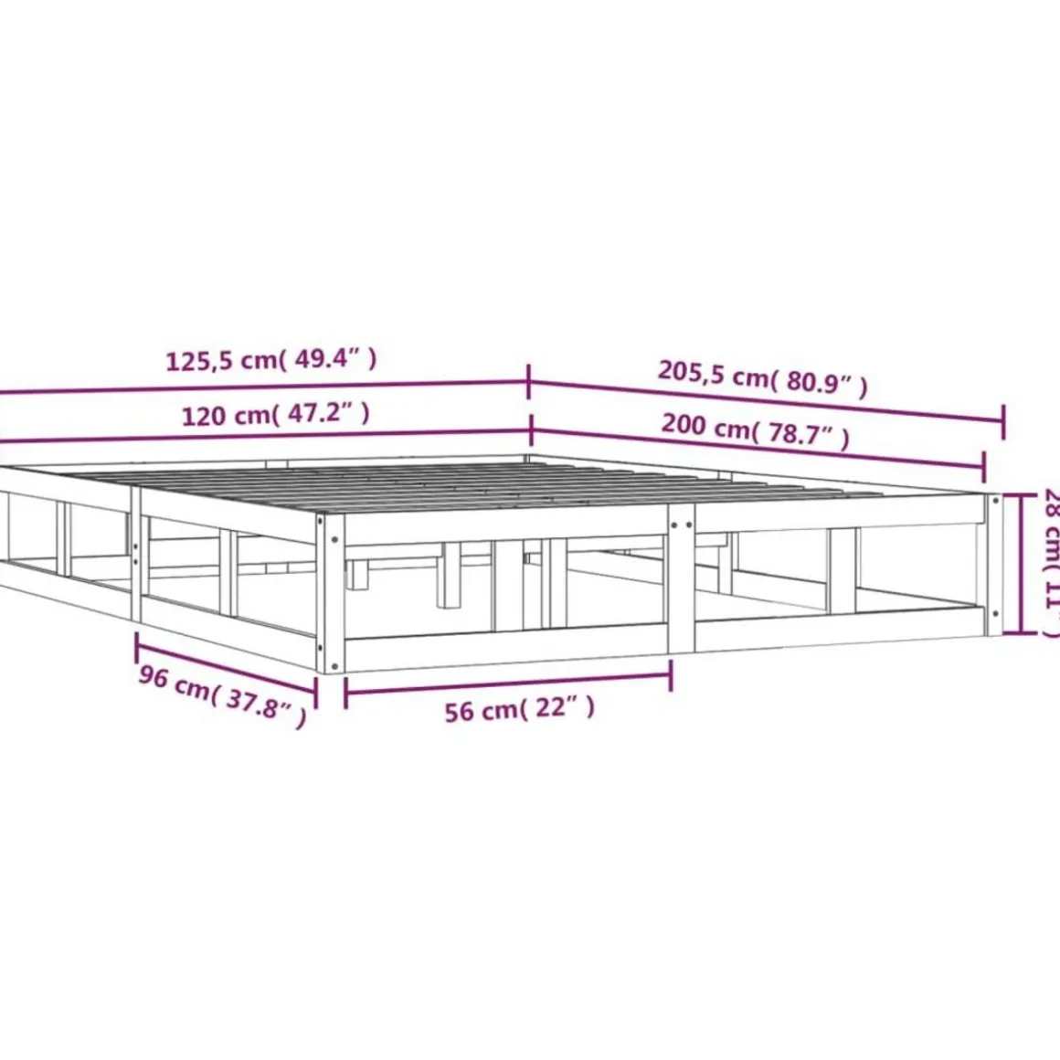 - Dimensions totales : 205,5 x 125,5 x 28 cm (L x l x H)