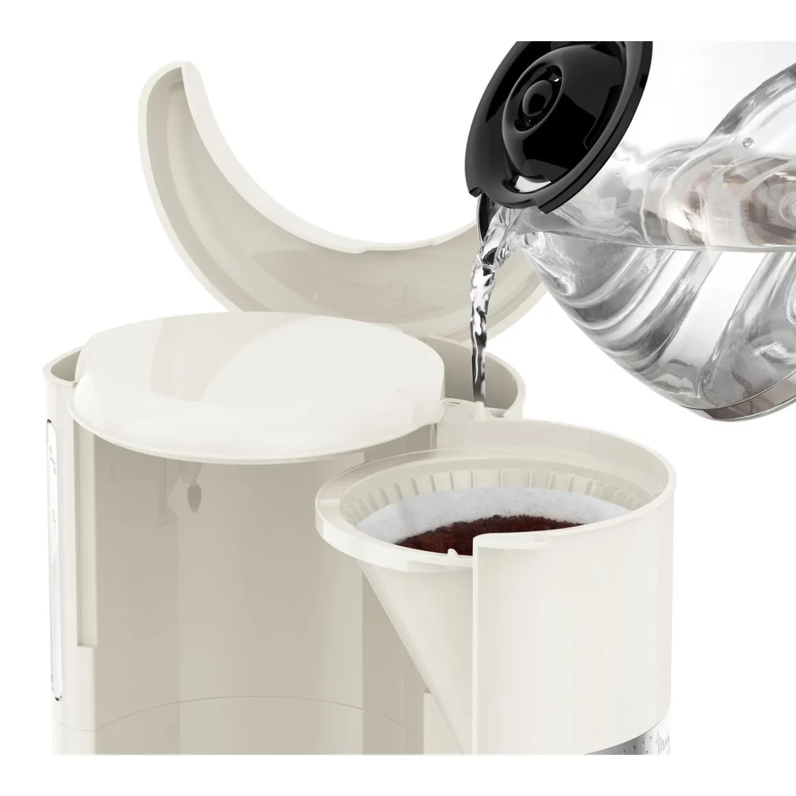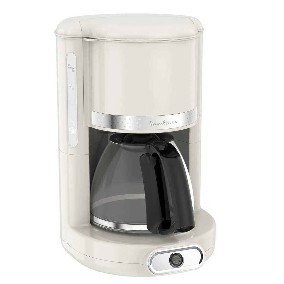 Moulinex vous propose cette cafetière à filtre et sa grande carafe de 1.25 L (environ 10 à 15 tasses). Dégustez un délicieux café moulu qui restera chaud longtemps grâce à son système de maintien au chaud (jusqu’à 30 minutes). Profitez des fonctions classiques comme le système anti-goutte ou encore l’arrêt automatique afin de simplifier la préparation de votre café. Cette cafetière Moulinex profite d’un look retro et va illuminer votre cuisine avec sa couleur ivoire!