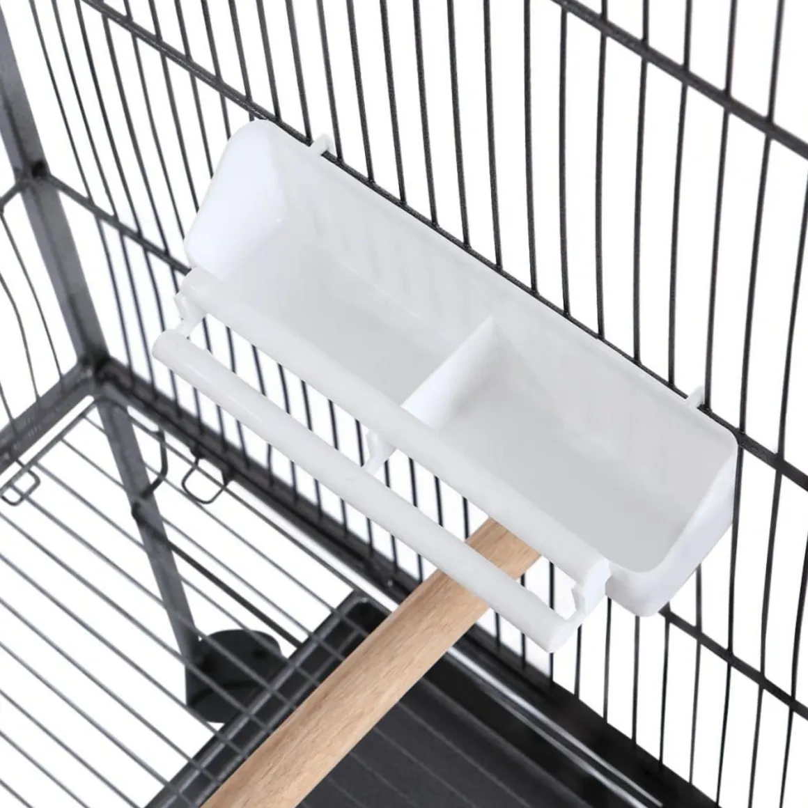 Cette grande cage a oiseaux est une demeure ideale pour vos oiseaux de compagnie. Elle comporte suffisamment d’espace et dispose de quatre perchoirs en bois pour que vos amis a plumes puissent voler et jouer en toute securite.