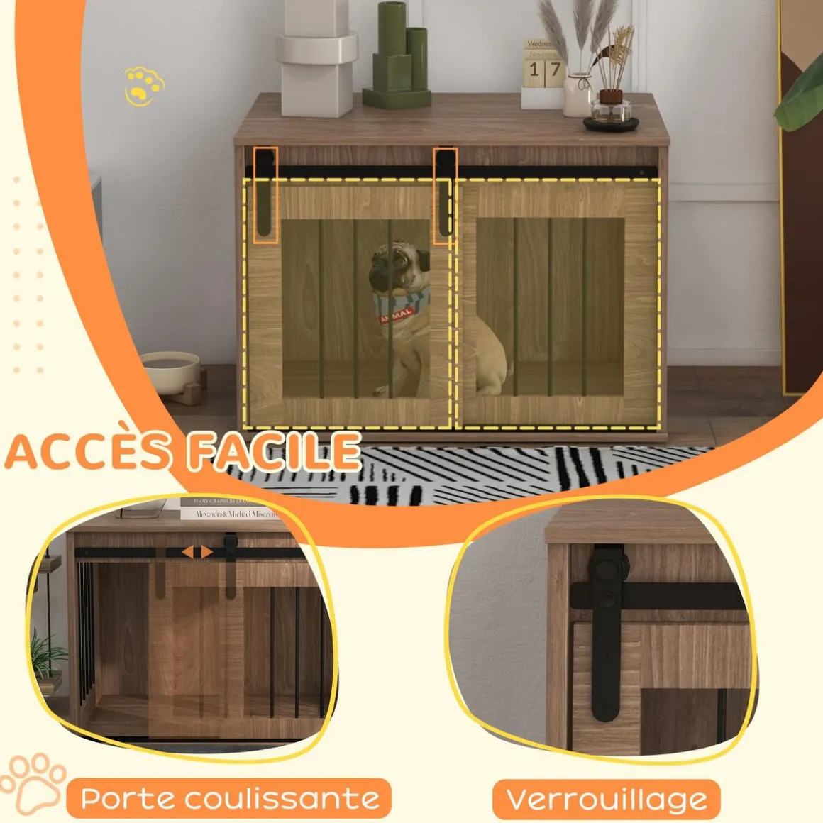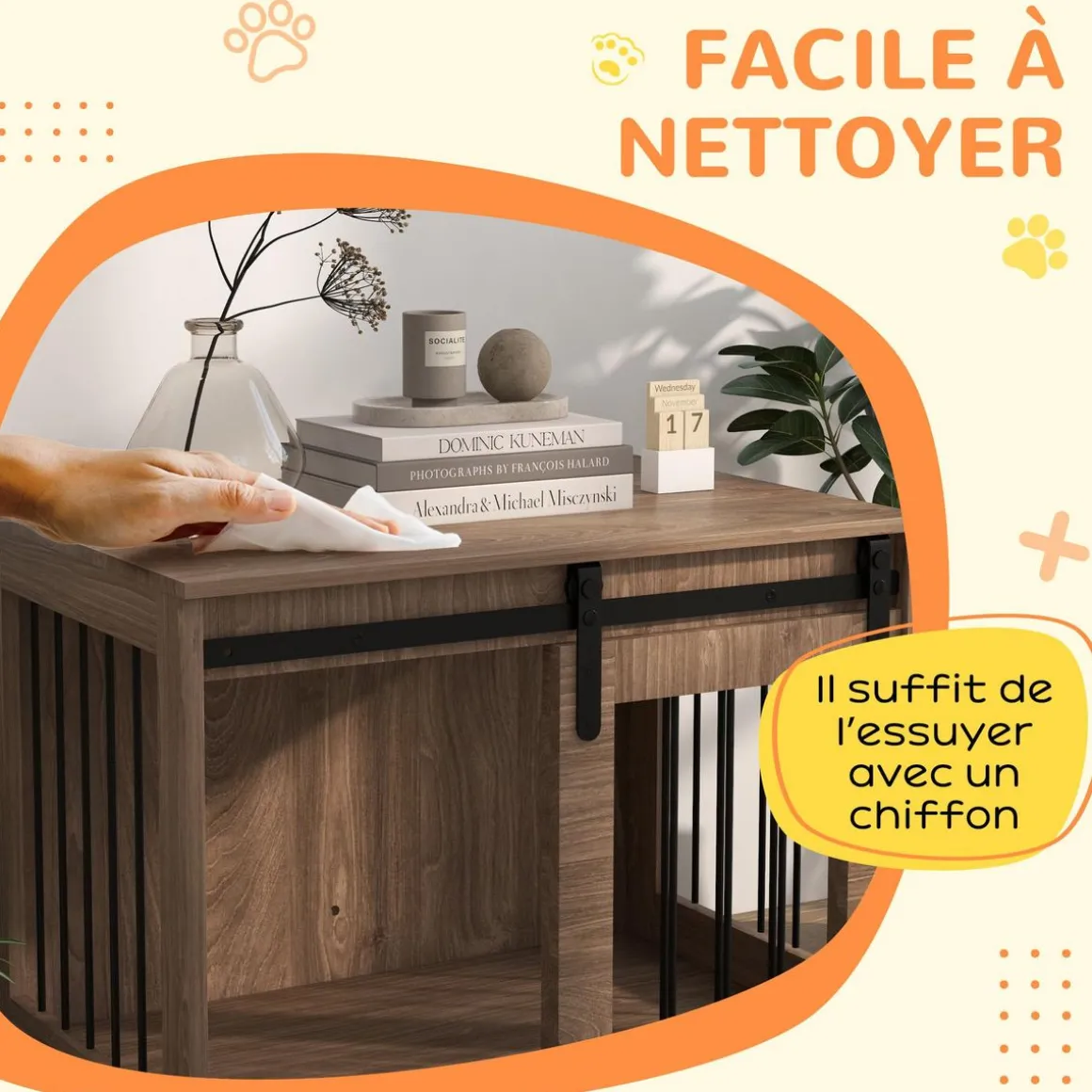 – Idéale pour garder votre chien en toute sécurité grâce à sa porte coulissante verrouillable