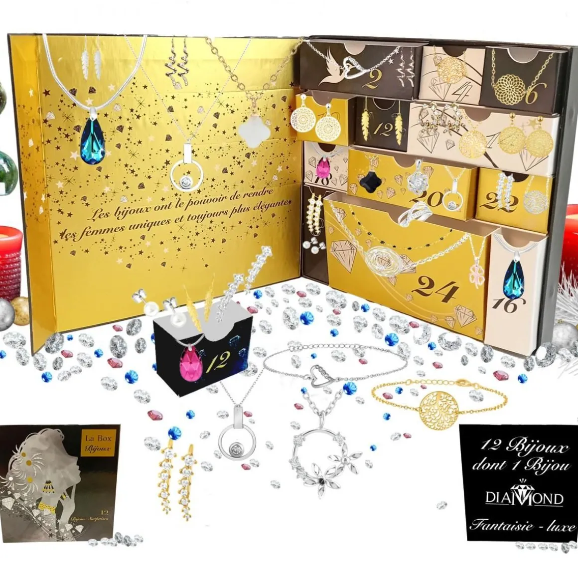 Car derrière chacune des 12 boîtes se trouvent 12 bijoux pour permettre d’étinceler et de rendre toujours plus élégante la destinataire de ce merveilleux cadeau.