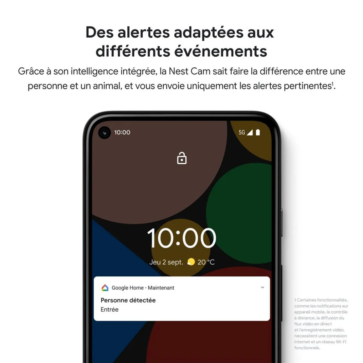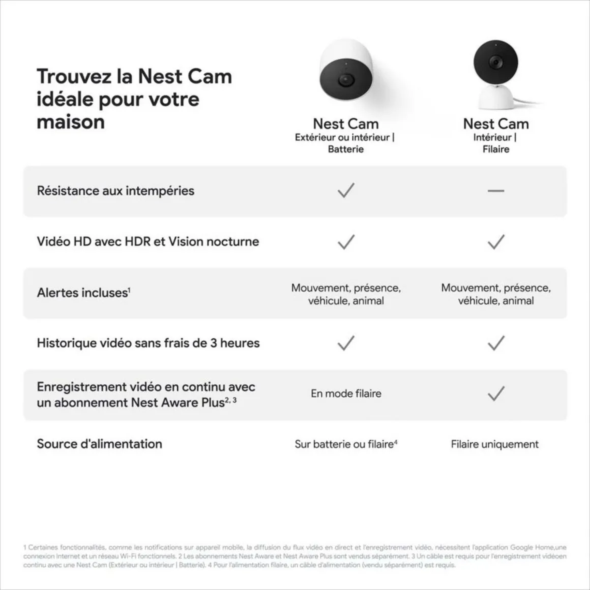 La caméra Nest intérieure avec Fil de Google sait faire la différence entre les personnes, les animaux et les véhicules, et vous envoie uniquement les alertes pertinentes. Grâce à la vidéo en direct 24h/24, 7j/7, regardez ce qui se passe chez vous, où que vous soyez, via l’application Google Home.