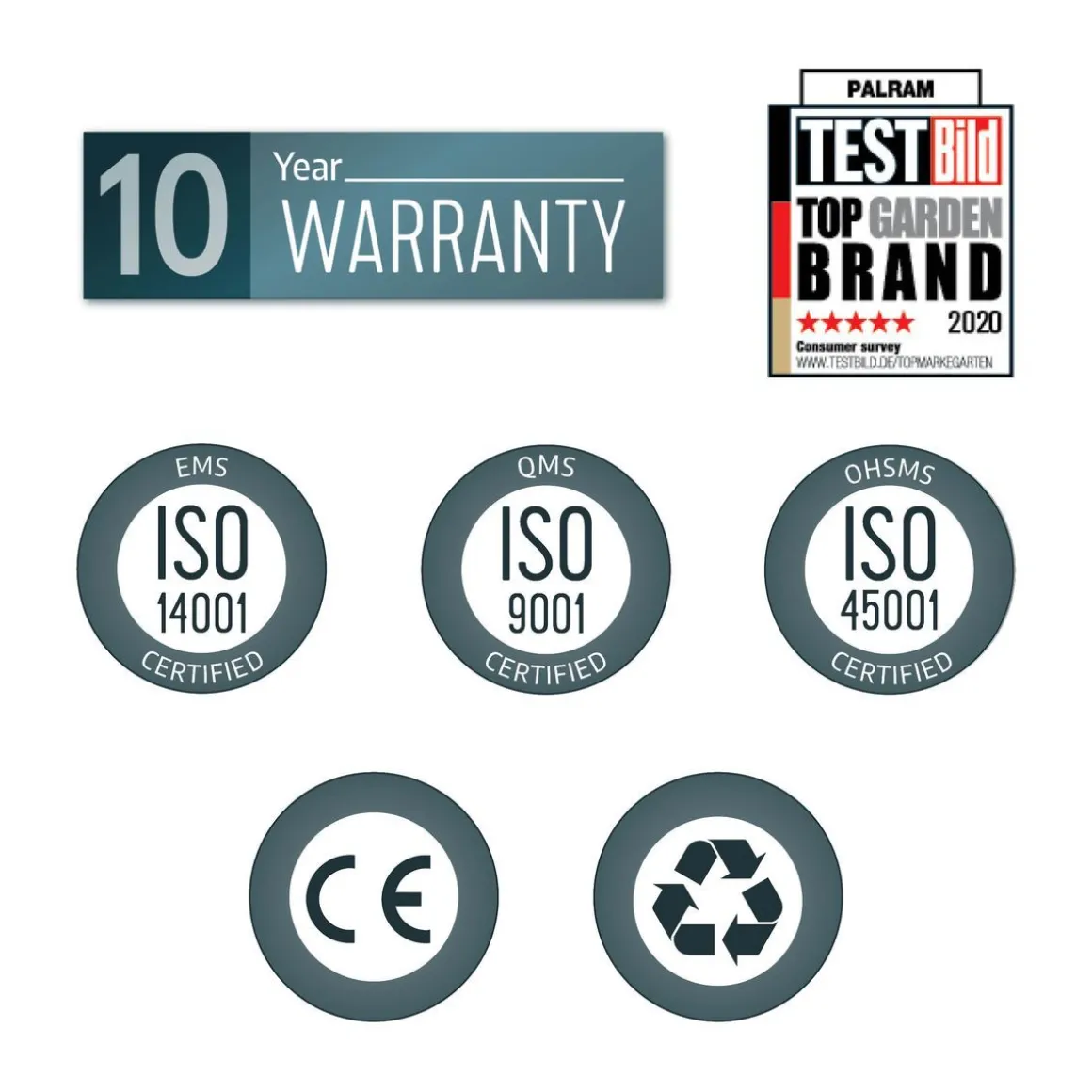 • Cadre en aluminium robuste laqué gris, avec connecteurs en