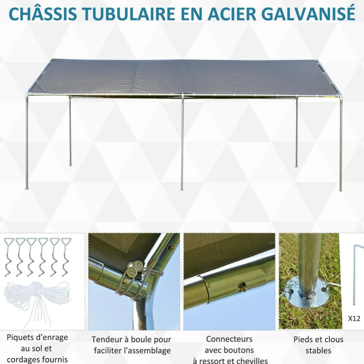 – Matériau principal de qualité pour une résistance accrue et usage pérenne : armature en acier galvanisé