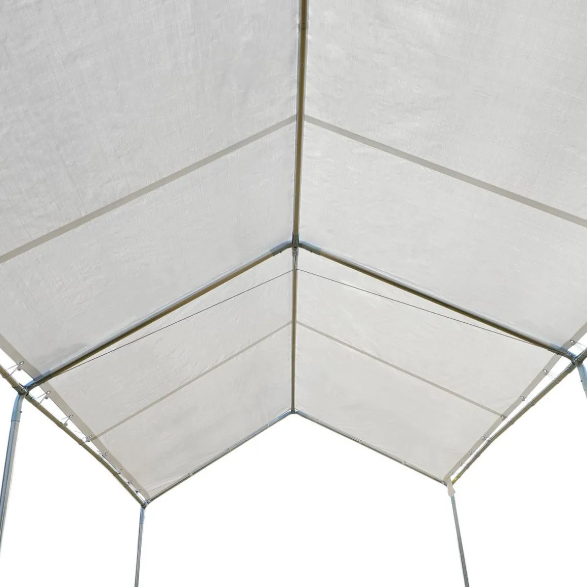 – Bâche fixée et maintenue à l’armature grâce à ses nombreux cordons d’attache