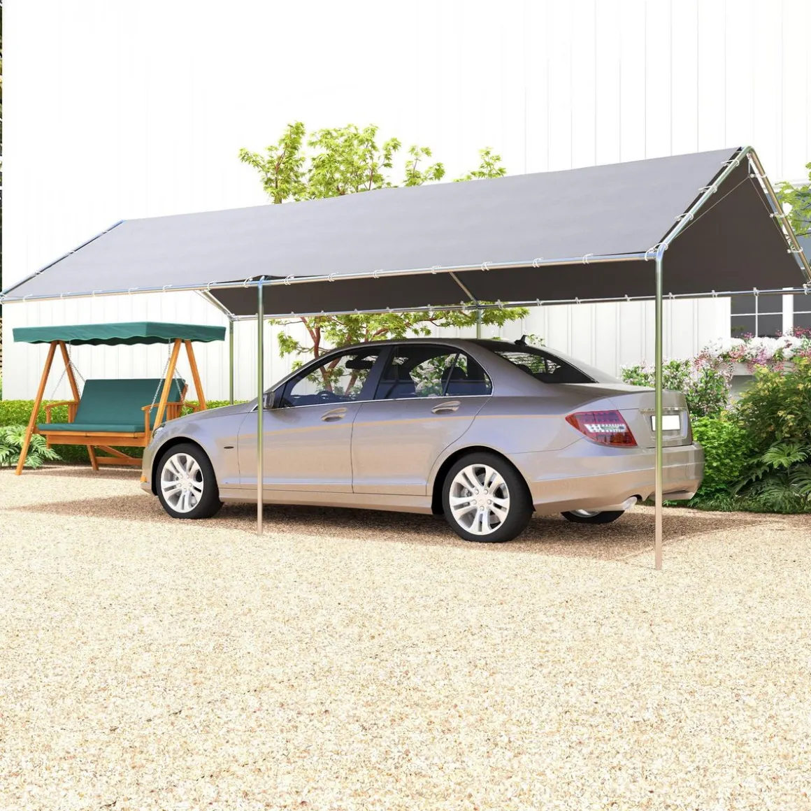 – Carport XXL très élégant avec toit à double pans