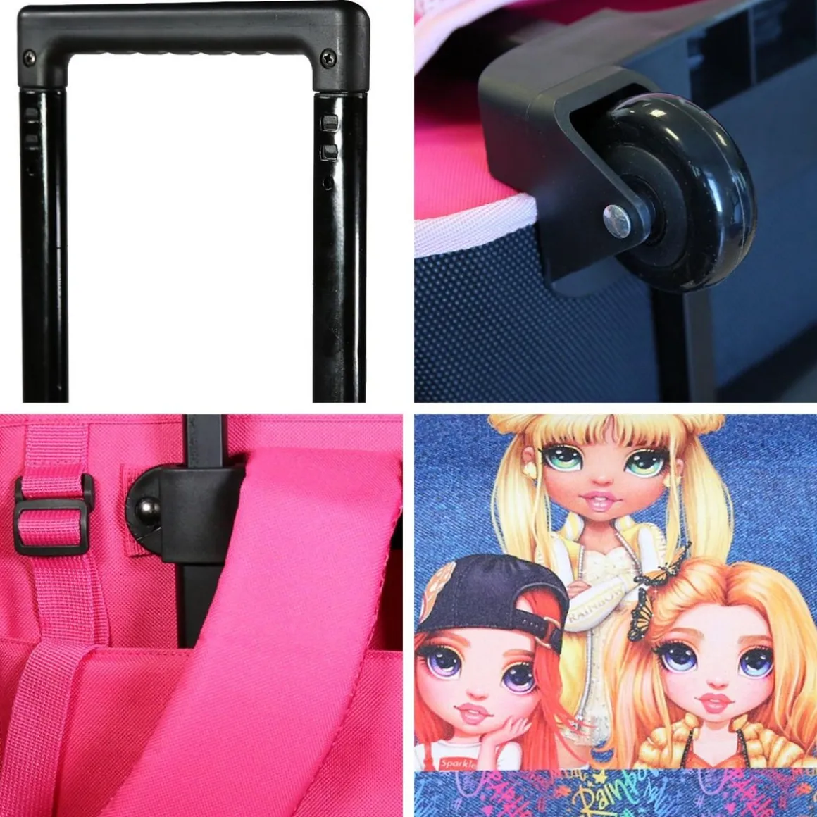 *STYLE COLORÉ AVEC RAINBOW HIGH* Préparez la rentrée avec le cartable à roulettes Rainbow High Multicolore. Ses couleurs éclatantes et son design tendance feront tourner les têtes dès le premier jour. Parfait pour ajouter une touche de magie à l’école.*SOLIDITÉ À TOUTE ÉPREUVE* Ce cartable est fabriqué en polyester de qualité supérieure, offrant une robustesse et une durabilité inégalées. Il est conçu pour résister aux rigueurs du quotidien, garantissant une utilisation prolongée sans souci.*TAILLE PARFAITE*