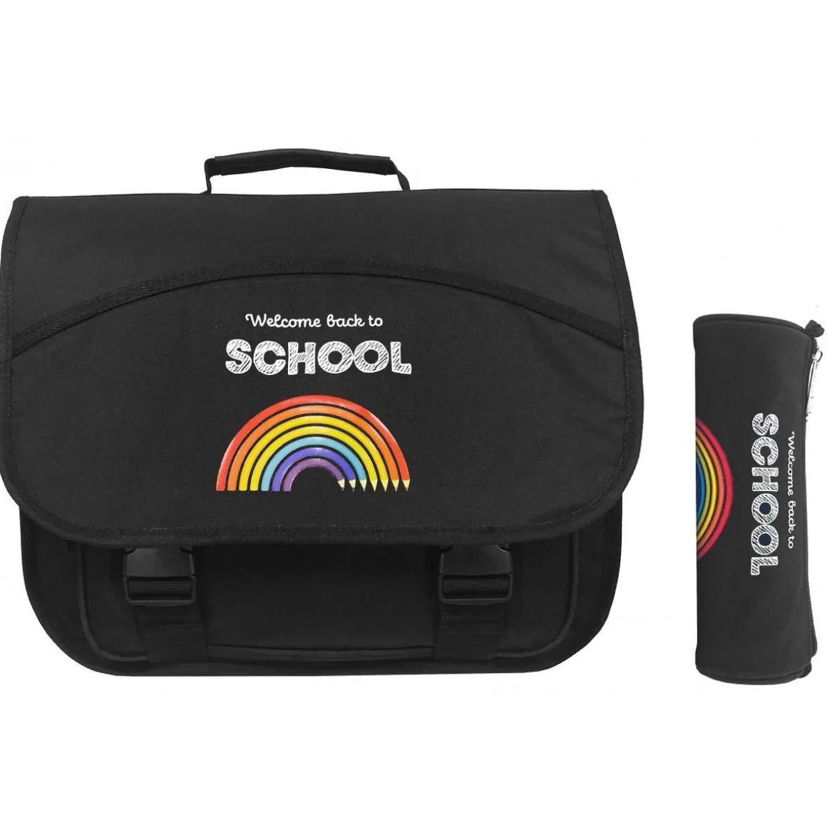 Cartable en toile imperméable à fermeture à rabat avec attaches en plastique,