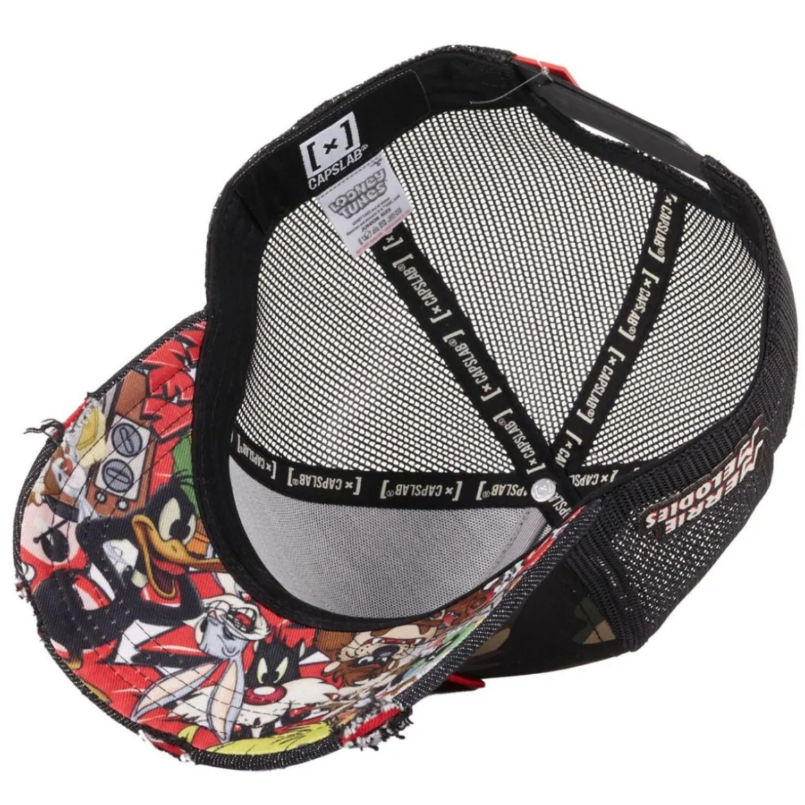Nouvelles casquettes [X] Capslab Looney Tunes ! La marque vous propose une nouvelle collection de casquette avec un patch à l’effigie du célèbre cartoon. Opte pour une casquette [X] Capslab trucker au style moderne et unique ! Avec un une casquette [X] Capslab à tes côtés tu vas pouvoir te démarquer des autres. Disponible en taille unique, ajustable par snapback à l’arrière, cette casquette Lonney Tunes s’ajuste parfaitement au tour de tête de 55,5 cm à 60 cm.