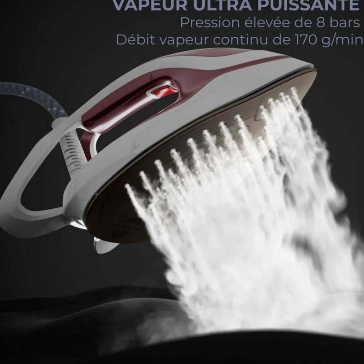 | À quoi sert le débit vapeur | grâce à la vapeur les fibres du linge se détendent, et plus il y a de vapeur, plus le repassage est efficace, facile et rapide | |