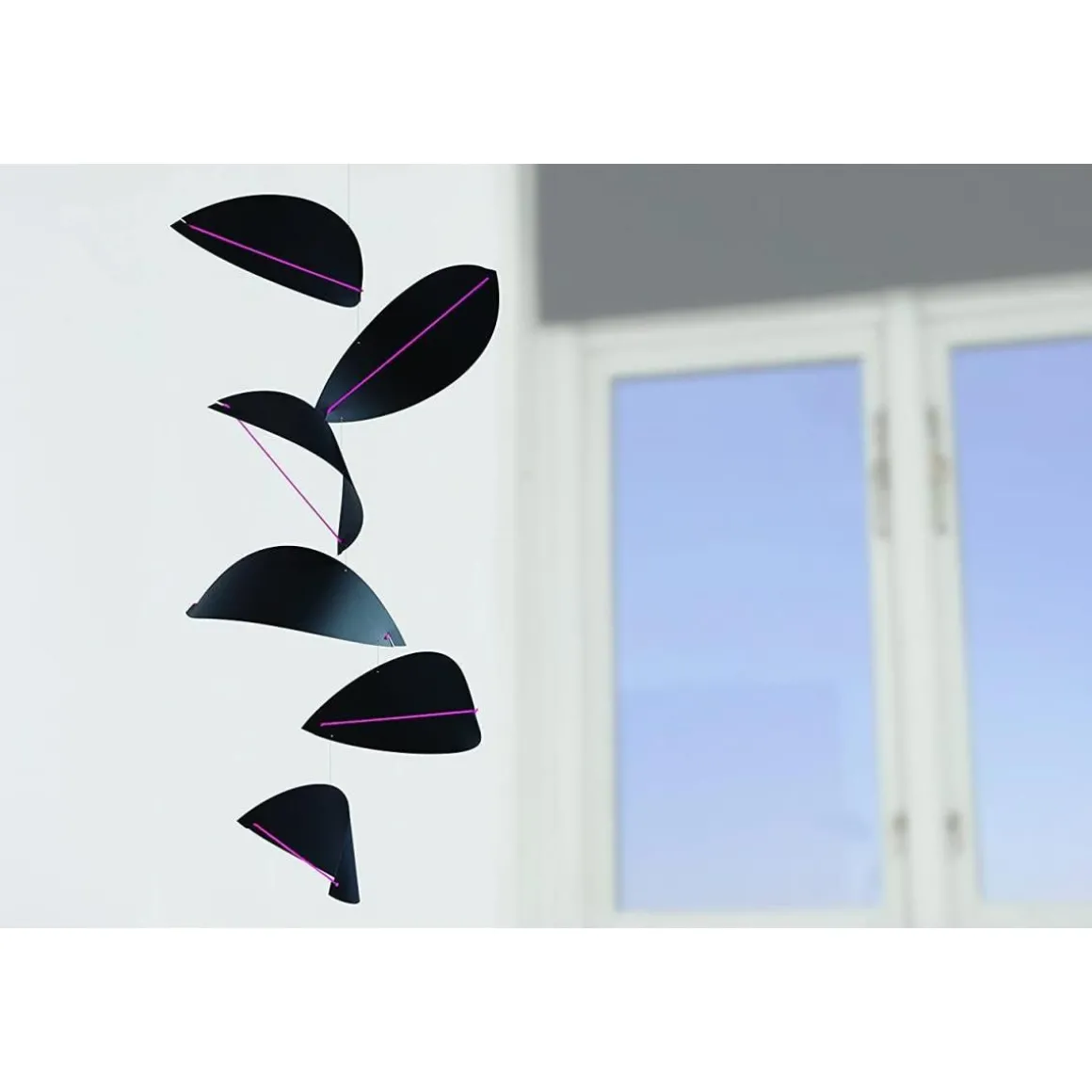 Mobile Cerf Volant Noir. 150S Kites, black. Design: Ole Flensted. Taille : 90 x 35 cm. Material: Serigraphical foil. Les mobiles Flensted symbolisent les multiples facettes de la vie, la seule constante étant le mouvement . Même dans les pièces les mieux fermées et visiblement les plus calmes, les mobiles Flensted frémissent au moindre mouvement d’air ou suivent en quelque sorte leur propre inspiration.
