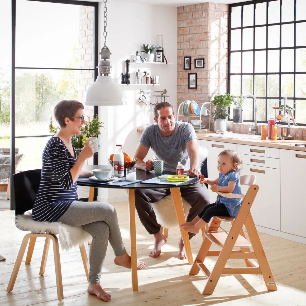 Notre recommandation : En combinaison avec le transat Alpha Bouncer vous pouvez utiliser la chaise haute ALPHA+ dès la naissance de votre bébé. Elle se peut combiner également avec les différents coussins d’assise, la table en bois Alpha Wooden Tray ou avec la table réglable Alpha Tray. »