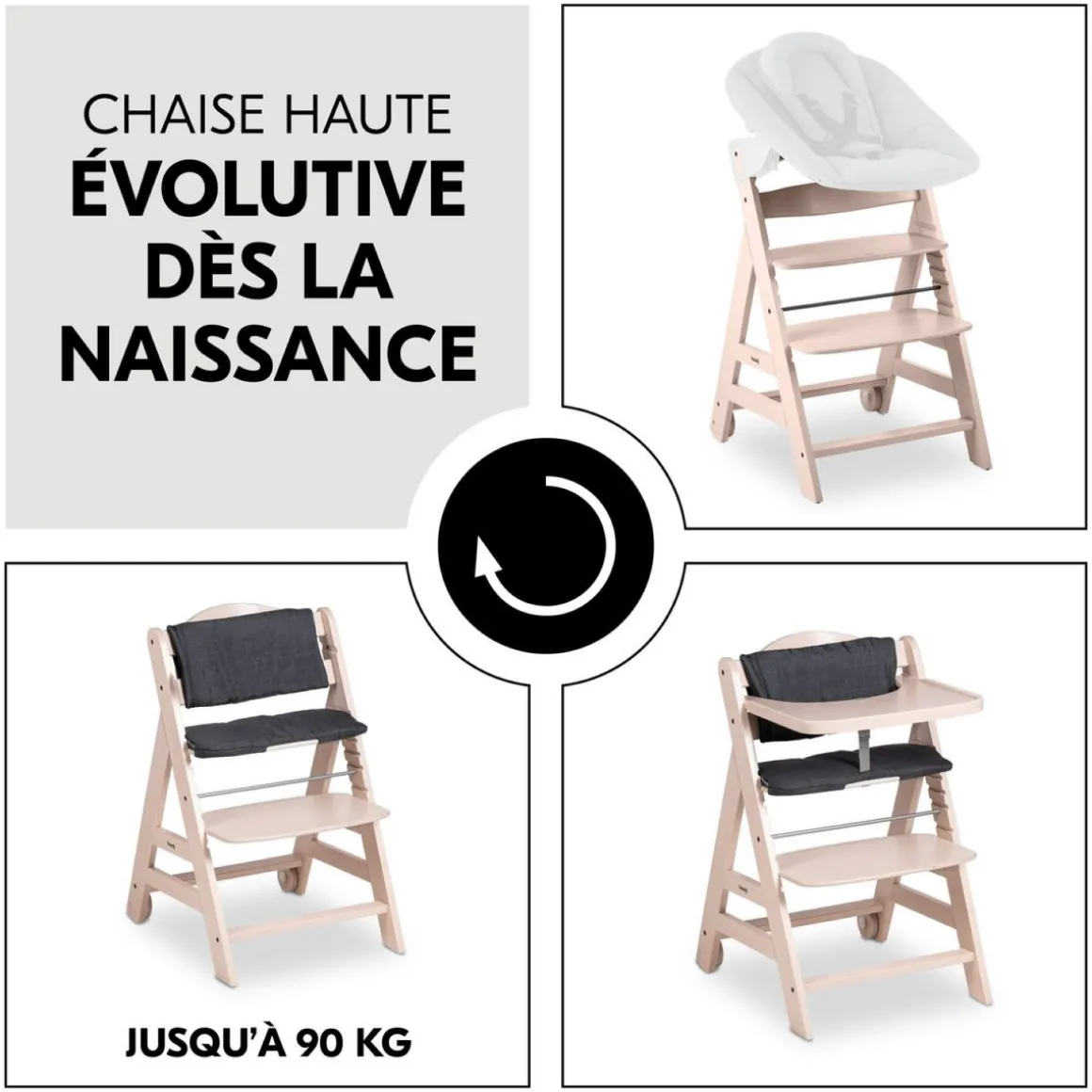 La chaise haute Beta+ est un compagnon durable et évolutif. Son design inversable, avec assise et repose-pieds réglables, s’adapte à la croissance de votre enfant jusqu’à 90 kg. Elle offre sécurité et confort grâce à son harnais à 5 points et à sa grande tablette, tout en permettant de rejoindre la table familiale.