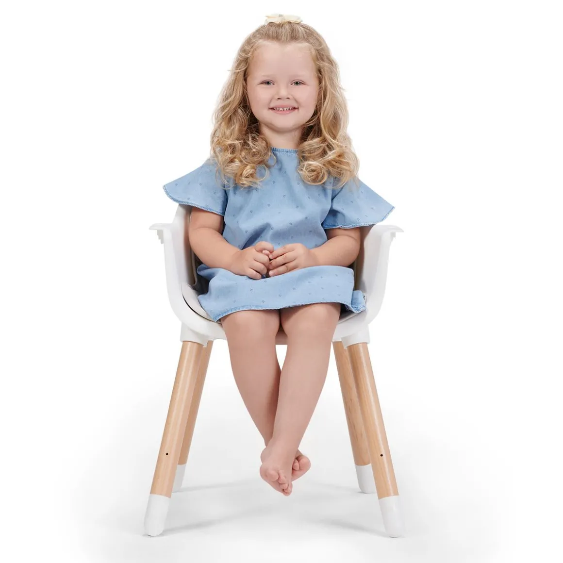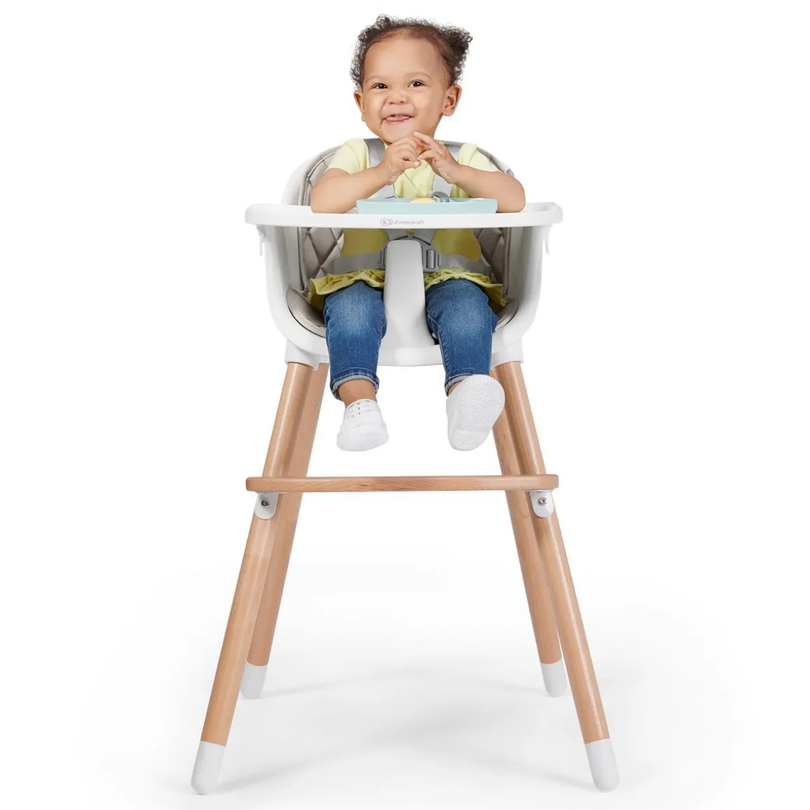 – La structure relativement légère permet à la chaise haute d’être facilement déplacée de la cuisine au salon.