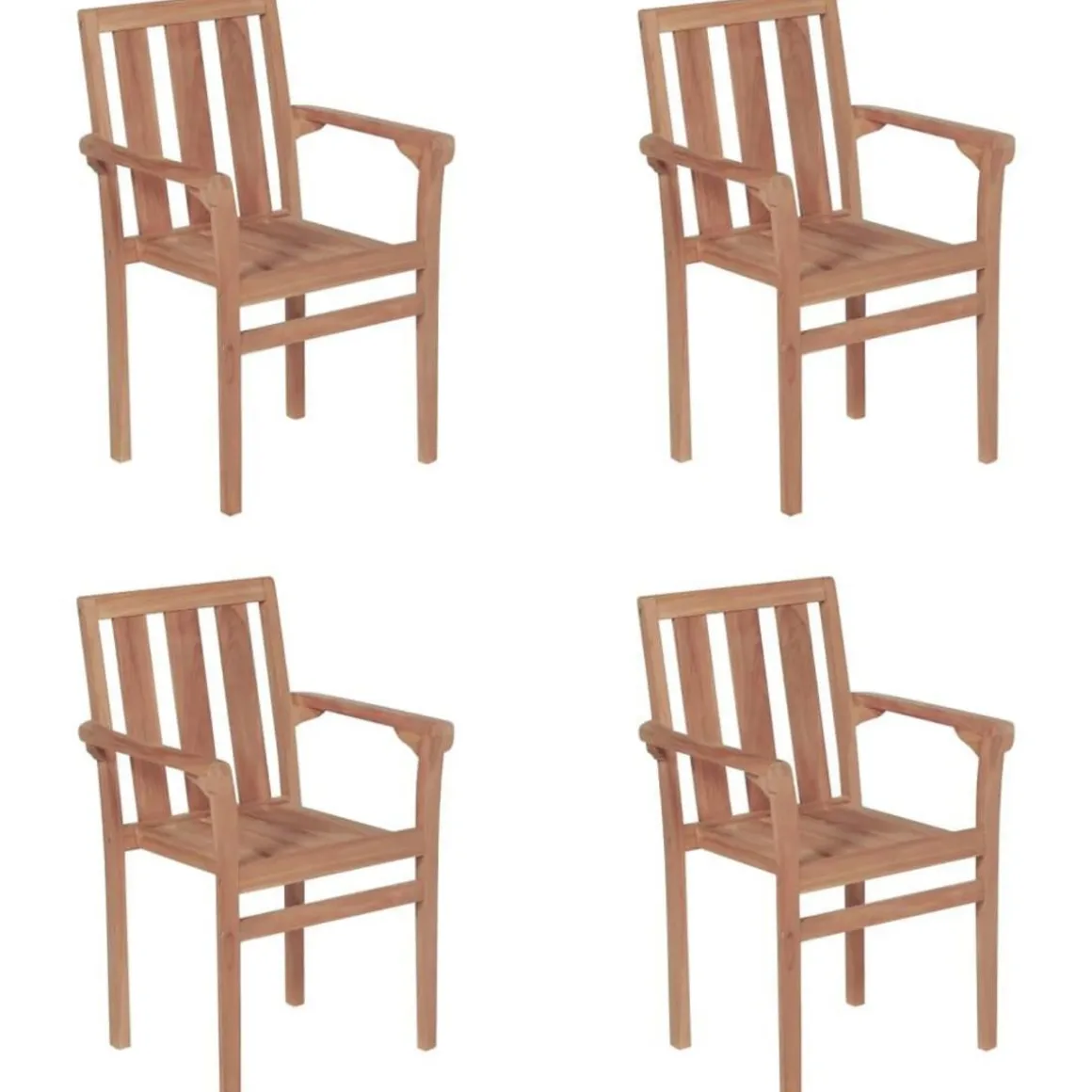 Cet ensemble de chaises empilables d’exterieur en bois a un design intemporel. Les chaises conviendront a une grande variete d’endroits, tels que des maisons, des bureaux, des bars et des cafes, grace a leur conception simple mais elegante.