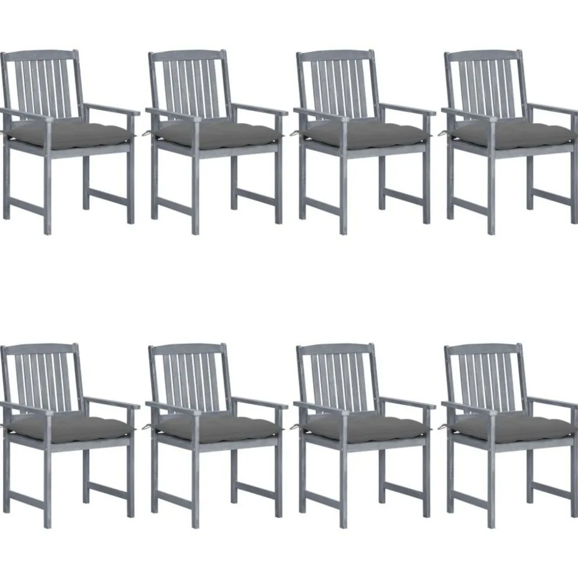Cet ensemble de chaise d’exterieur est fait de bois d’acacia massif avec une finition lavee grise, qui est un bois dur a grains denses. Le bois d’acacia massif a egalement la force de supporter le poids et de resister a l’usure du temps. Cet ensemble de chaises en bois est stable, durable et resistant aux intemperies. De plus, la surface de la chaise est facile a nettoyer avec un torchon humide. Les coussins inclus offrent un confort supplementaire.