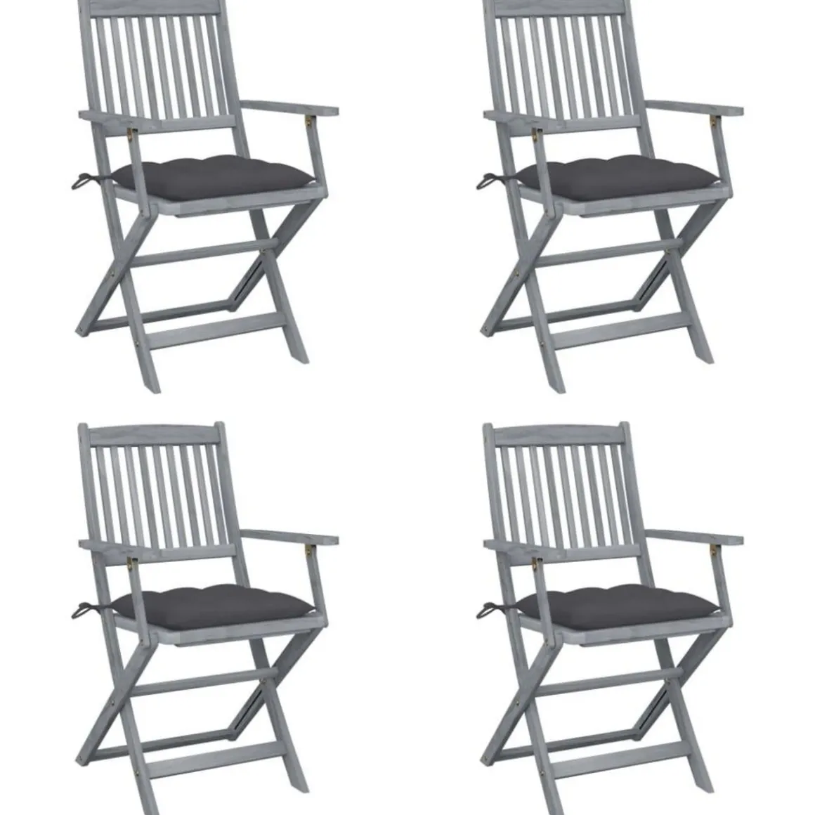 Ces chaises de salle a manger sont faites de bois d’acacia massif, un bois dur tropical, les rendant resistantes aux intemperies et durables pour des annees d’utilisation. Le bois d’acacia massif a la force de soutenir le poids et de resister a l’usure du temps. La surface grise delavee est facile a nettoyer avec un chiffon humide. Les chaises peuvent etre repliees pour economiser de l’espace lorsqu’elles ne sont pas utilisees. De plus, les coussins inclus offrent un confort supplementaire lors des moments de detente ou des repas. Chaque coussin comporte deux ensembles de cordes pour le fixer fermement a la chaise.