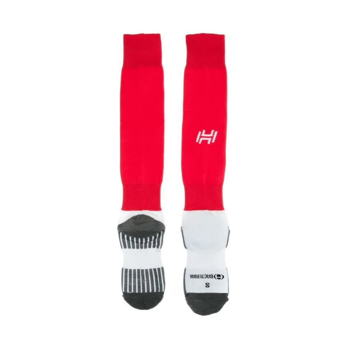 Elément indispensable pour compléter votre tenue de foot, voici les chaussettes ! Montantes Logo Hungaria blanc sur le devant Technologie Hungaria Bacterial Elastique au medio-pied Coloris: rose foncé corail/blanc